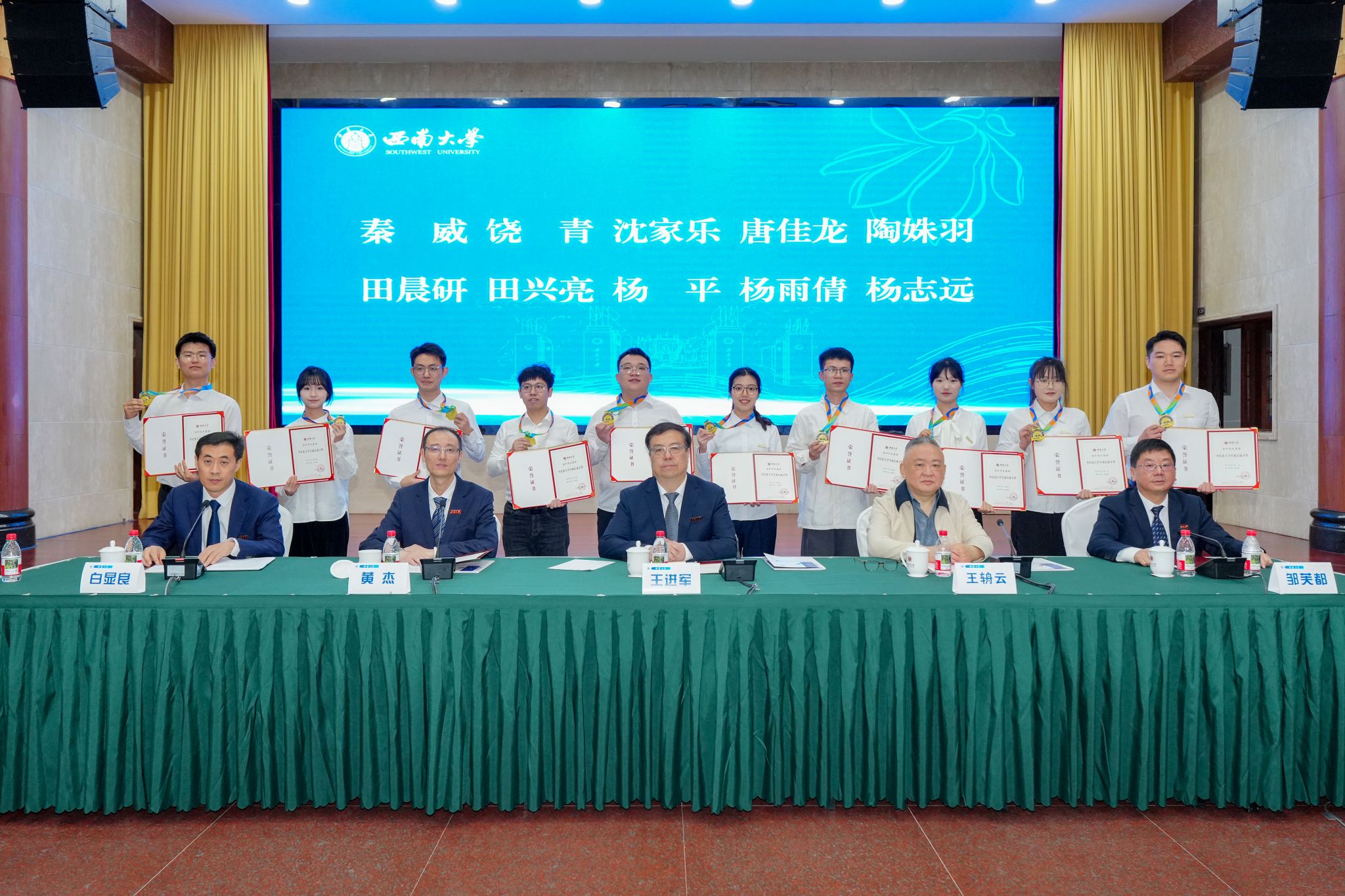 典礼现场播放了基金评审及获奖师生风采视频。副校长邹芙都宣读首届“含弘光大学者奖”获奖名单,药学院罗雷、农学与生物科技学院何光华、文学院寇鹏程三位教师登台领奖。在“学生成长成才奖”颁奖环节,党委副书记黄杰为40名获奖学子颁发证书。资源昆虫实验室硕士生陈施彤作为代表发言。