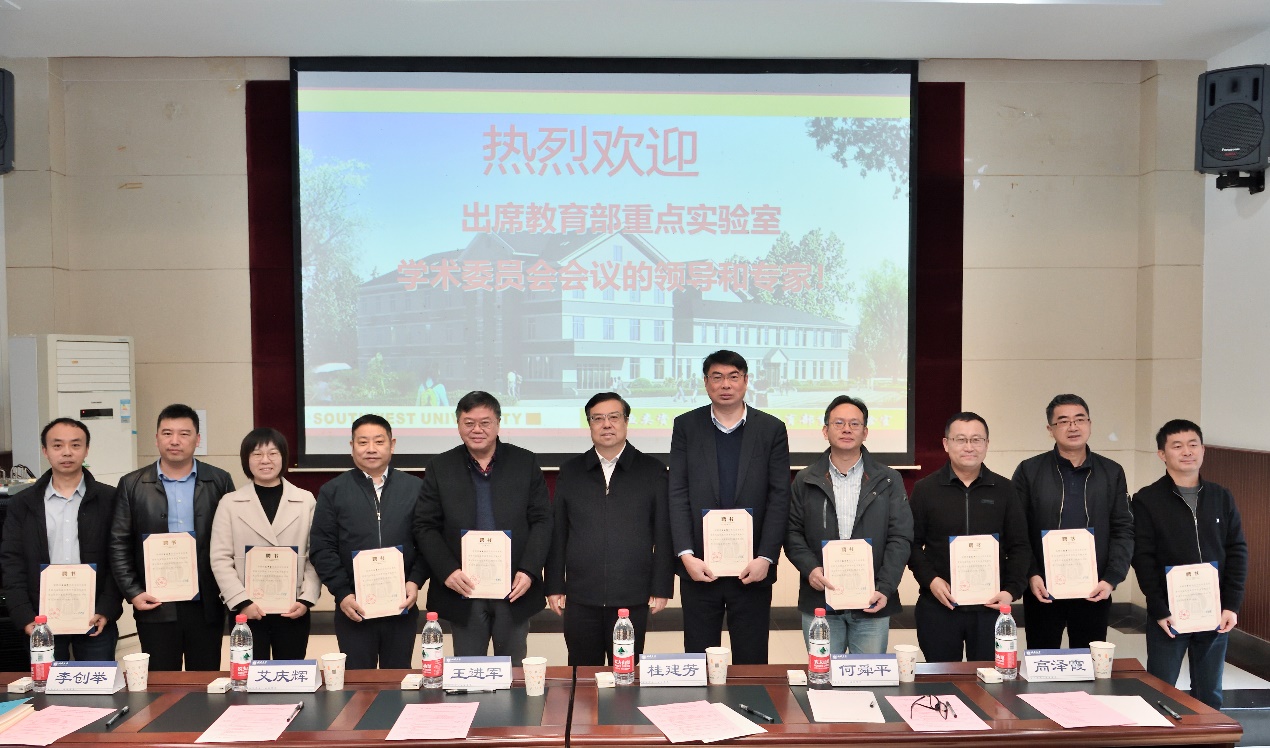 校长王进军为淡水鱼类资源与生殖发育教育部重点实验室新一届学术委员颁发聘书。