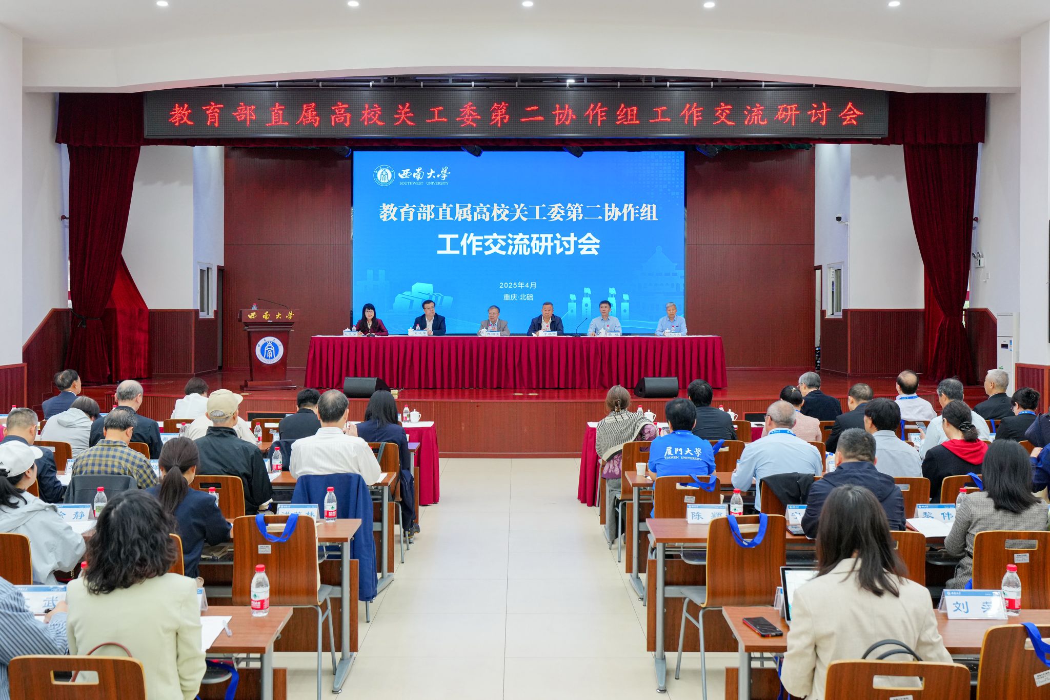 4月23日,教育部直属高校关工委第二协作组工作交流研讨会在学校召开。会议以“服务教育强国建设,推进关工委工作高质量发展”为主题,围绕基层“五好”关工委建设等方面进行交流研讨。教育部关工委常务副主任傅国亮、重庆市教委二级巡视员蔡理、重庆市关工委常务副主任于学信,Beat365中国唯一官方网站校长王进军出席会议。会议由副校长赵玉芳、校关工委常务副主任宋乃庆分段主持。