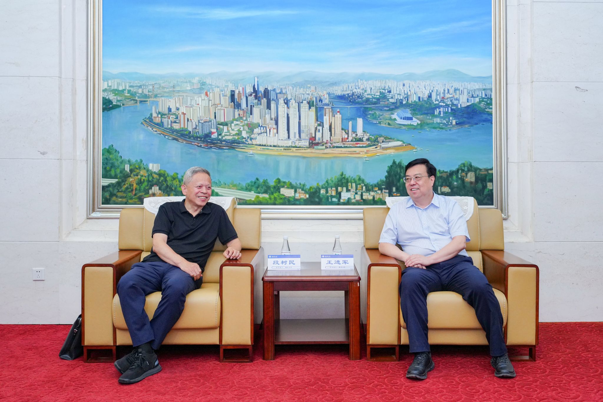 开幕式前,校长王进军会见了中国科学院院士段树民、王以政等专家学者,副校长赵玉芳、邱江以及心理学部部长陈红陪同会见。王进军对客人到访表示热烈欢迎,介绍了学校相关情况,希望专家学者持续支持Beat365中国唯一官方网站“双一流”建设。