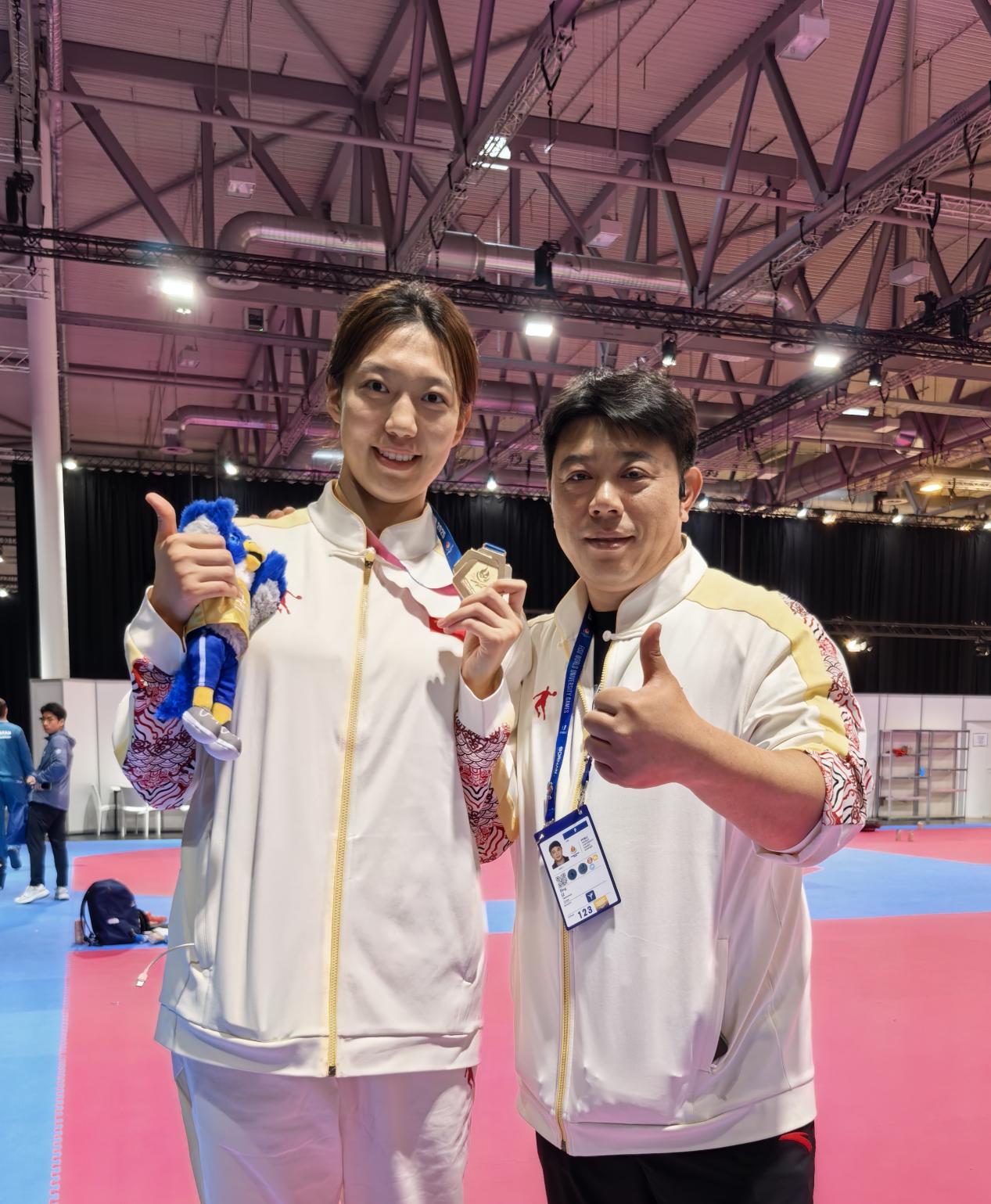 在跆拳道竞技类女子团体决赛中,学校2023级体育教学专业研究生穆文喆与队友默契配合,以2:0战胜劲敌韩国队勇摘金牌。目前,穆文喆在跆拳道女子+67公斤级世界积分排名第六,未来有望继续提升排名,冲击2028年洛杉矶奥运会。