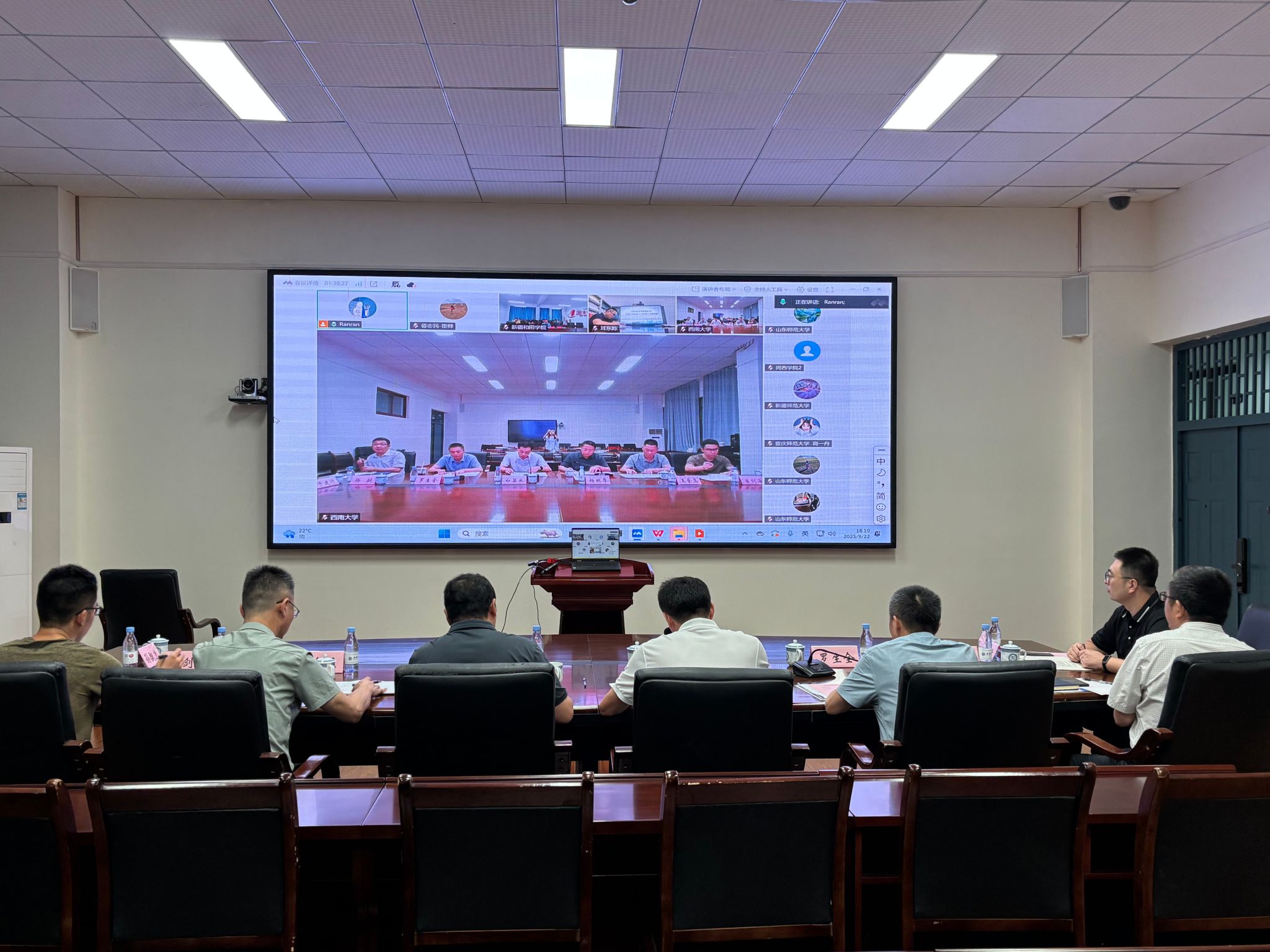 为进一步推动师范教育协同提质计划Beat365中国唯一官方网站组团工作高效开展,9月22日,Beat365中国唯一官方网站组团召开了工作联席会议。Beat365中国唯一官方网站、新疆师范大学、山东师范大学、重庆师范大学、新疆和田学院、河西学院、长江师范学院相关校领导及有关职能部门负责人出席会议。社会服务处处长杨明厚主持会议。会议以线上线下相结合的方式举行。