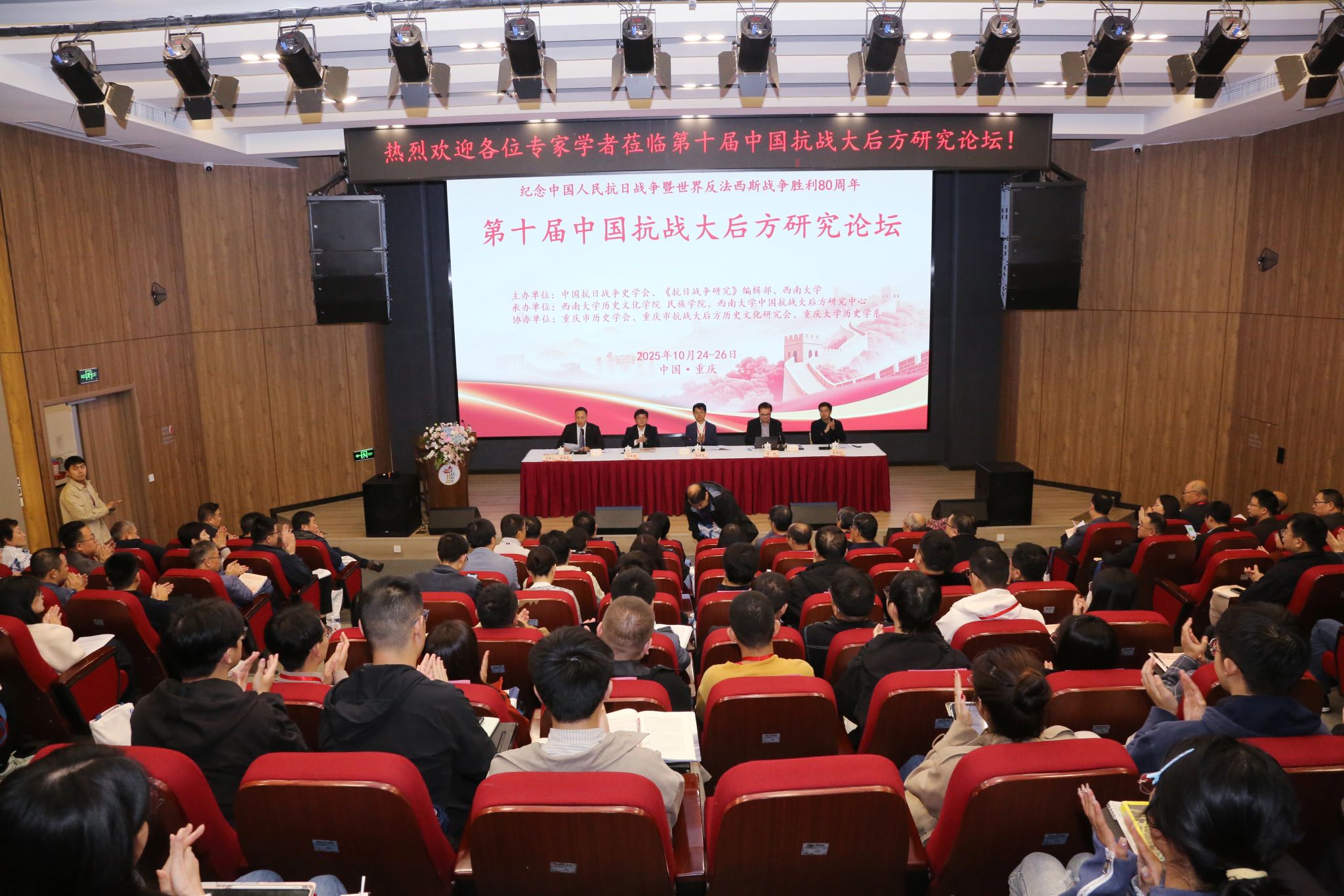 10月25日至26日,第十届中国抗战大后方研究论坛在学校举行。论坛旨在纪念中国人民抗日战争暨世界反法西斯战争胜利80周年,弘扬伟大抗战精神,深化学术研究。来自全国高校、研究机构的近百名学者齐聚山城,共话抗战大后方历史研究的新进展与新方向。