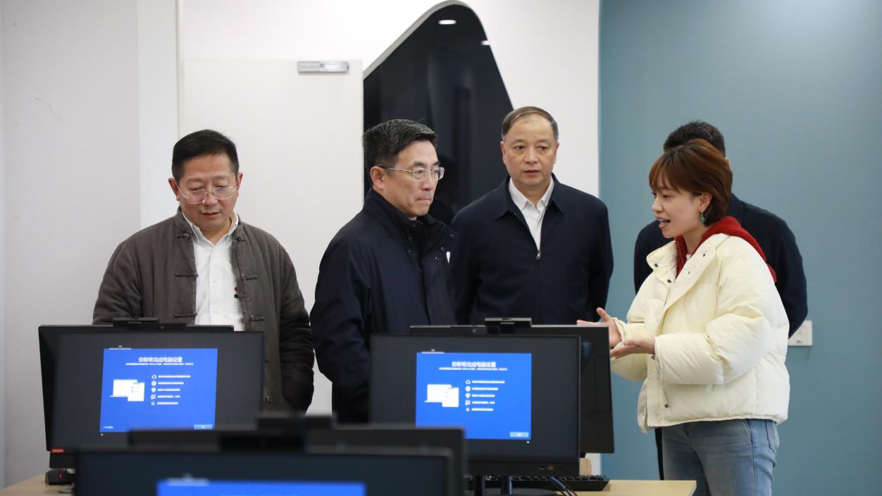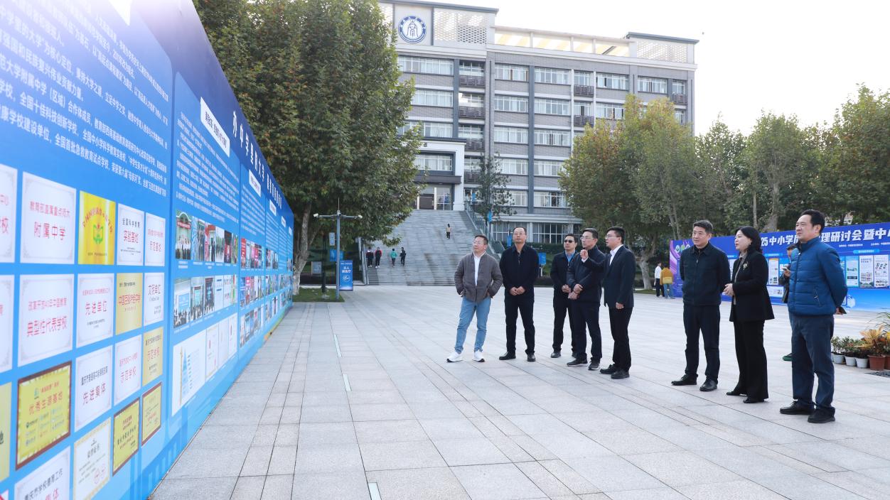 调研组重点走进附属中学,深入探寻学校育人实践经验成效。在校期间,一行人实地参观了附属中学生涯发展中心、心育导航中心、U云校等特色场所,询问了解学校在学生生涯规划、心理健康教育、智慧课堂打造、校际托管帮扶等方面的创新举措,对附属中学将办学理念转化为具体育人实践的成效予以肯定。