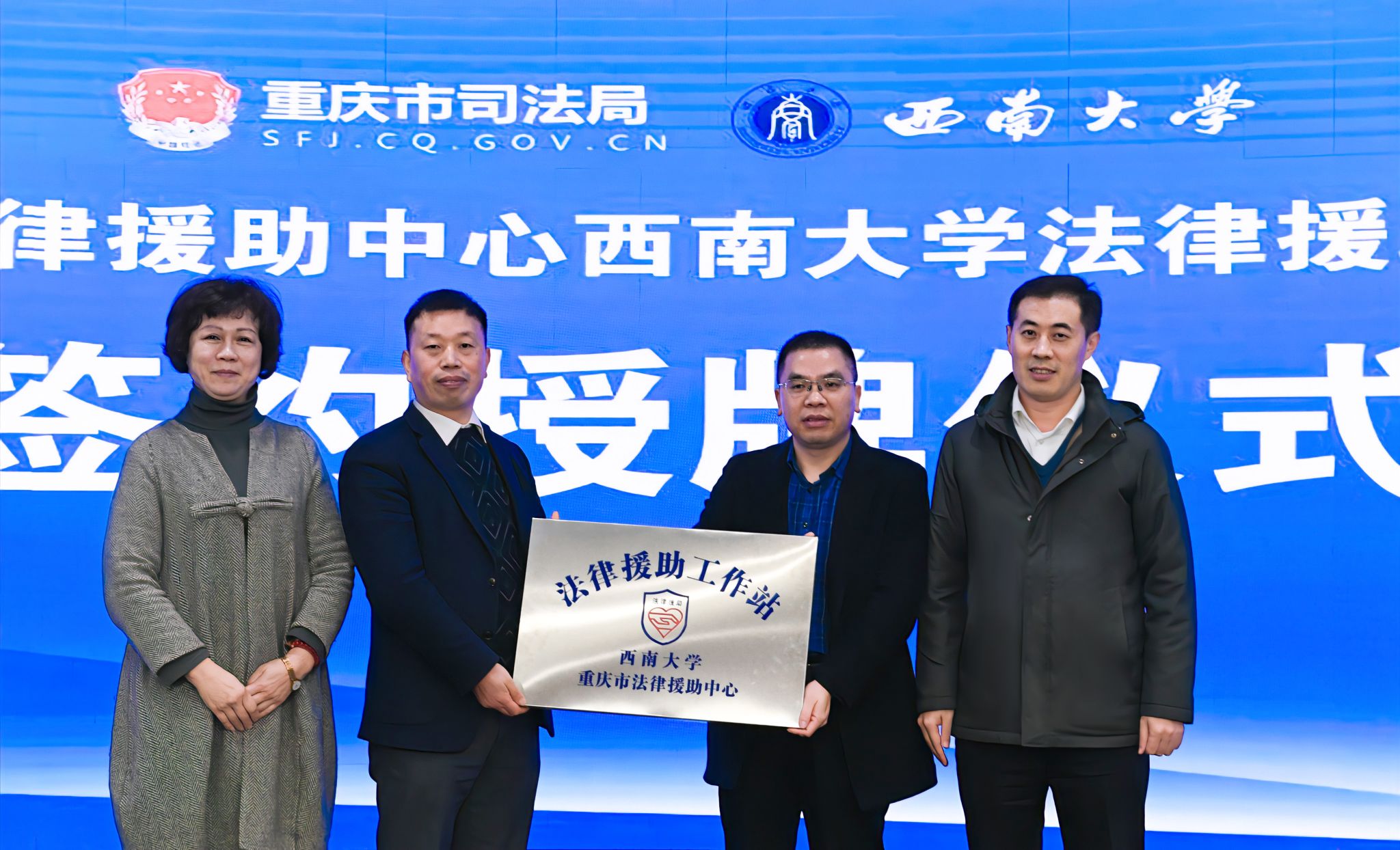 12月4日,“重庆市法律援助中心Beat365中国唯一官方网站法律援助工作站”签约授牌仪式在学校举行。副校长白显良、重庆市司法局二级巡视员唐文英为工作站授牌。
