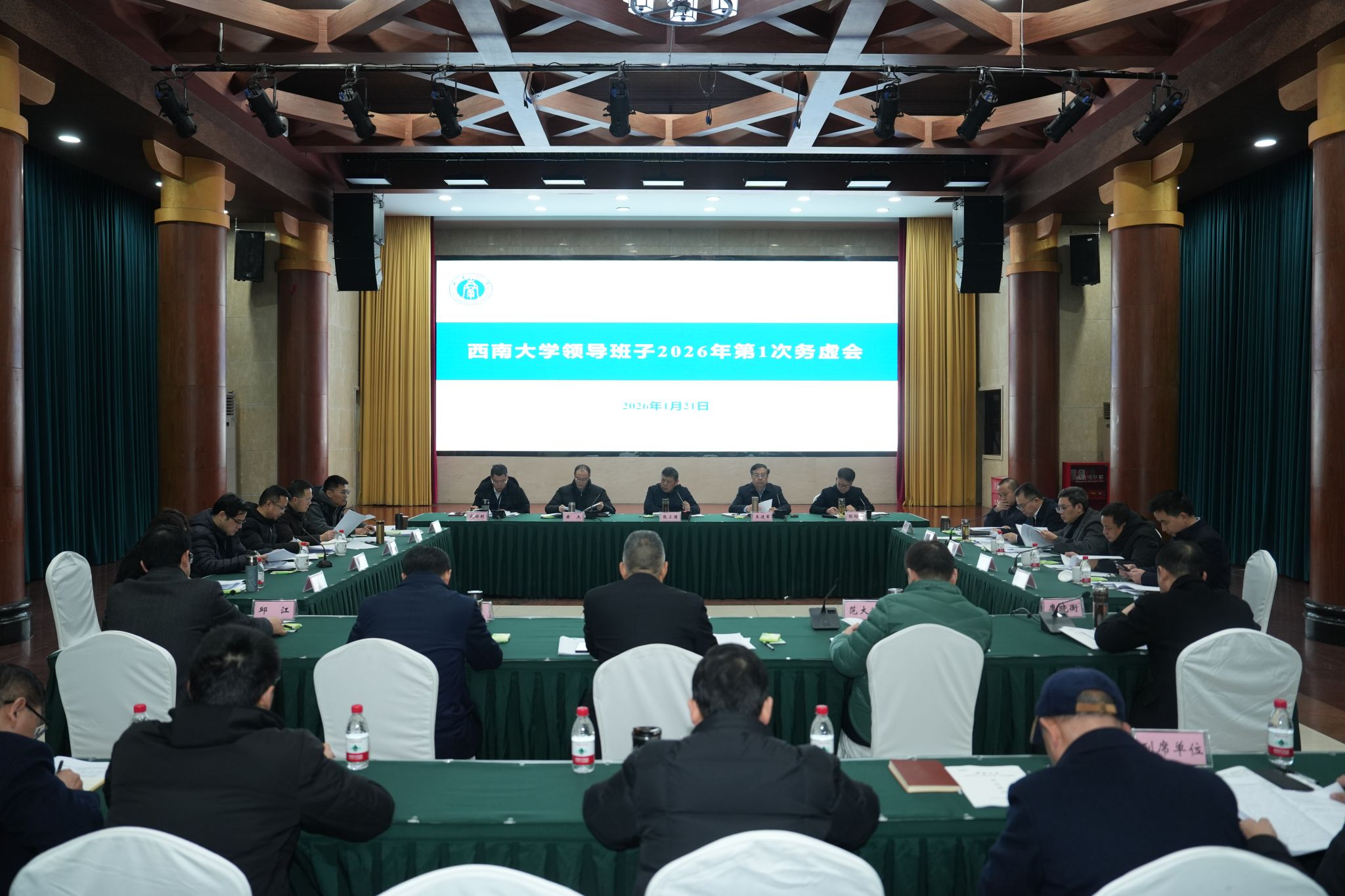 1月21日,学校在东方红会议厅召开校领导班子2026年第1次务虚会,围绕科技创新服务地方经济社会发展、拔尖创新人才培养、120周年校庆、“十五五”规划、2026年工作要点等进行交流研讨。党委书记张卫国,校长、党委副书记王进军分别主持会议。