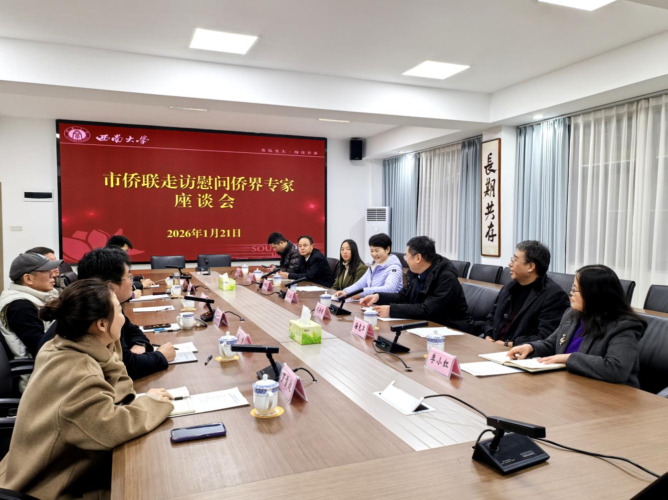 座谈会由市侨联办公室主任方绪汇主持,北碚区侨联主席袁超、学校党委统战部负责同志等参与活动。