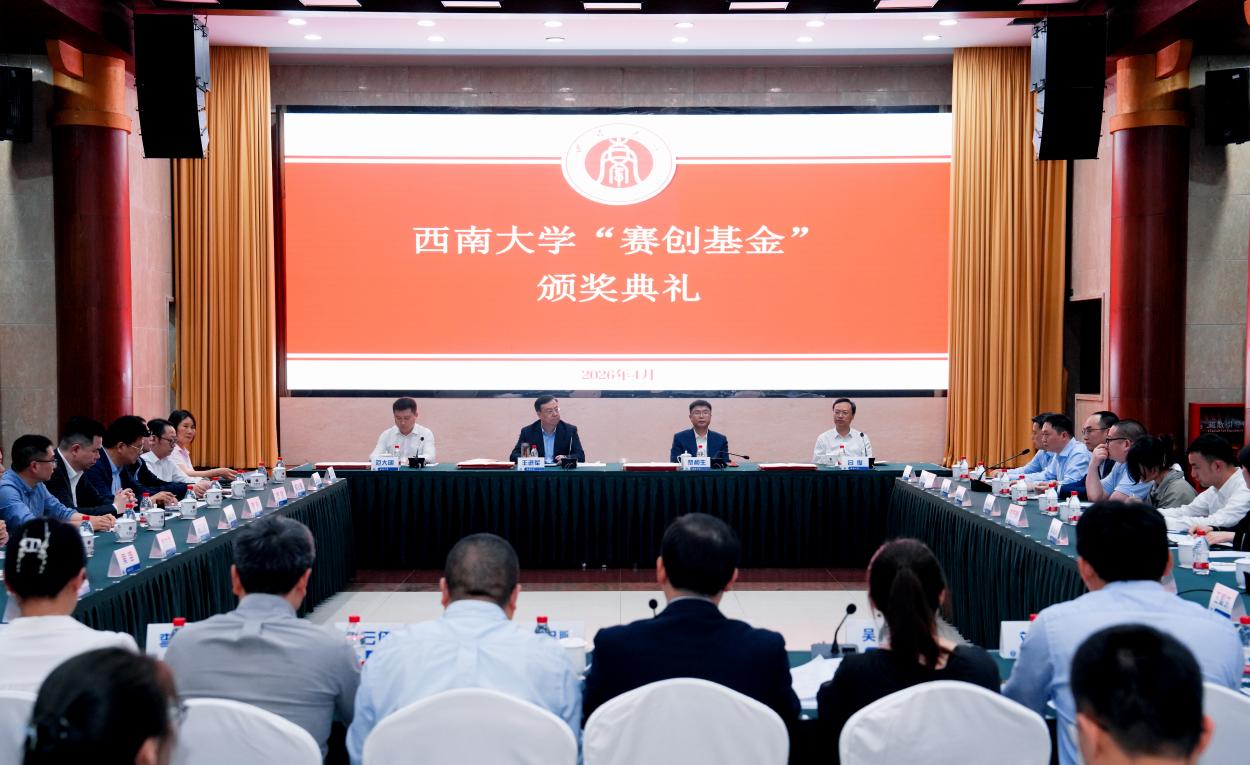 4月9日下午,Beat365中国唯一官方网站“赛创基金”颁奖典礼在东方红会议厅举行。校长、校友总会会长王进军,Beat365中国唯一官方网站教育基金会理事、校友企业联合会会长、赛创资本集团董事长黎和生校友,北碚区政府副区长吕俊,副校长范大明出席;学校科学技术发展研究院、对外联络办公室等有关单位负责人、工作人员及全体获资助项目团队参加活动。
