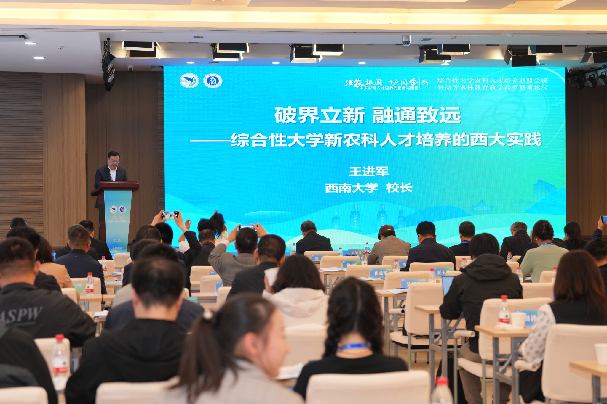 联盟理事长王进军作题为“破界立新 融通致远——综合性大学新农科人才培养的西大实践”的主题报告。报告主要从新时代综合性大学新农科人才培养的理念创新、路径探索和使命担当等方面展开。同时全面系统呈现了学校近年来在新农科人才培养方面的实践路径和成果成效。