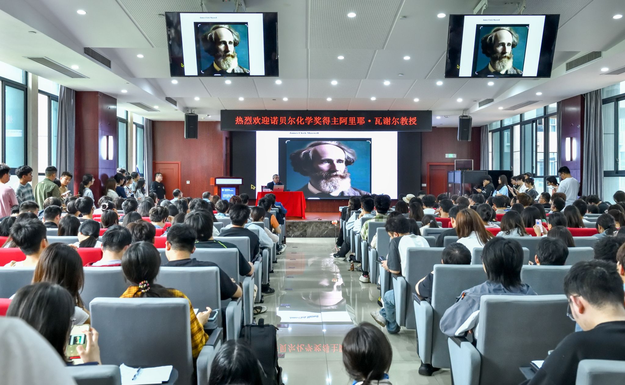 会见后,瓦谢尔在药学院 中医药学院为师生带来了题为“Electrostatic Basis of Biological Actions”的主旨演讲,重点阐释了静电相互作用在酶催化反应及分子识别过程中的核心机制,通过生动的案例分析,展示了计算机模拟揭示生命现象的物理本质。