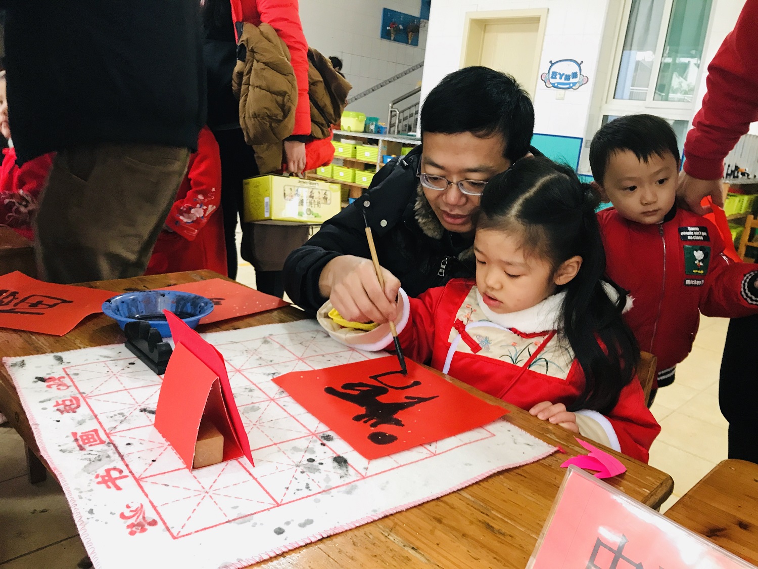 12月29日,实验幼儿园里处处张灯结彩、喜气洋洋,大班的20多名小“梦娃”在大门口载歌载舞地迎接小朋友和家长们的到来。幼儿园精心准备了精彩亲子游戏项目,孩子们和家长一道手持游戏卡穿梭在幼儿园中,形式多样的趣味游戏寓教于乐,给家长和孩子带来了意义非凡的亲子时光。