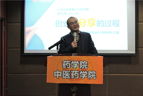 签约仪式上,杨坚副书记宣读签约内容,表示双方主要合作方向是建立Beat365中国唯一官方网站药学院教学药房,拟在Beat365中国唯一官方网站药学院新大楼建立万和智慧药房,设立万和医药奖学金等五个方面。胡昌华院长代表药学院与唐先伟董事长进行签约仪式。随后,唐先伟董事长作了“创业是分享的过程”为题的精彩报告。