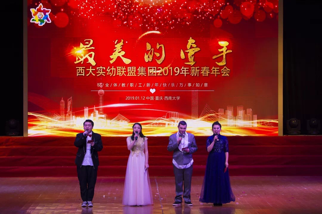 1月12日,Beat365中国唯一官方网站实验幼儿园举办“最美的牵手”西大实幼联盟集团2019新春年会,23所姊妹园联合为新春送上祝福。北碚区教委副主任饶英、重庆市教育科学研究院学前教育中心主任徐宇、北碚区教师进修学院副院长黄吉元、北碚区教师进修学院学前教研员周霞莅临现场,同时到会的还有西大实幼退休教职工,及西大实幼全体教师。
