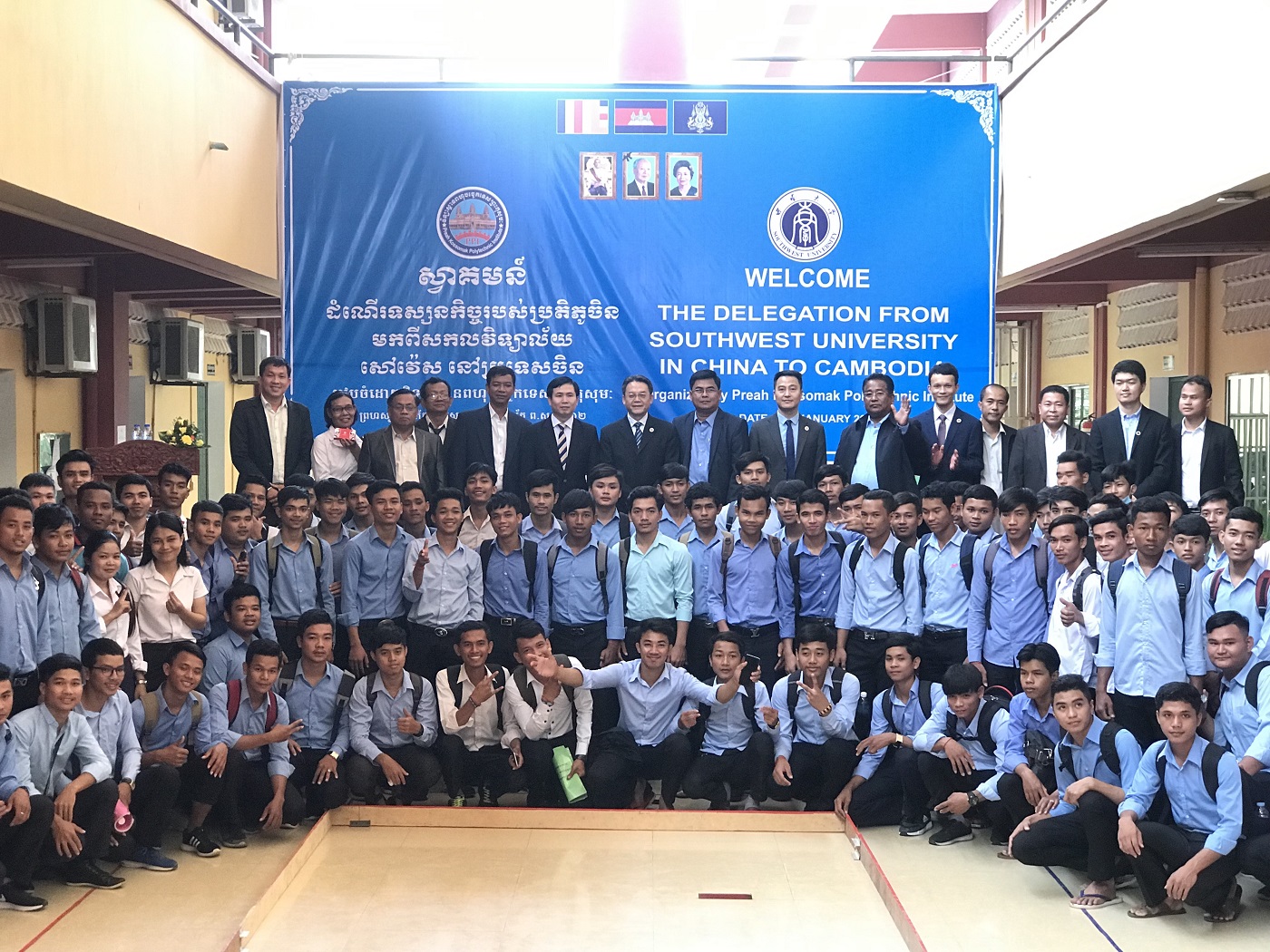 代表团先行访问了柬埔寨金边皇家大学、国立管理大学和皇家理工学院(Preach Kossomak Polytechnic Institute)等相关高校,柬方负责人充分肯定Beat365中国唯一官方网站良好的办学条件,并期望尽快启动双方实质性合作。其中,金边皇家大学副校长CHHUN HOK对与Beat365中国唯一官方网站教育学和心理学领域的合作表达出浓厚兴趣;国立管理大学副校长SENG BUNYHOEUN则表示愿意在短期游学项目和学分项目上尝试合作,并就教学、食宿、学费等细节进行商谈。代表团与来自皇家理工学院的400余名在校学生进行了互动,就留学西大的有关问题进行了现场答疑。