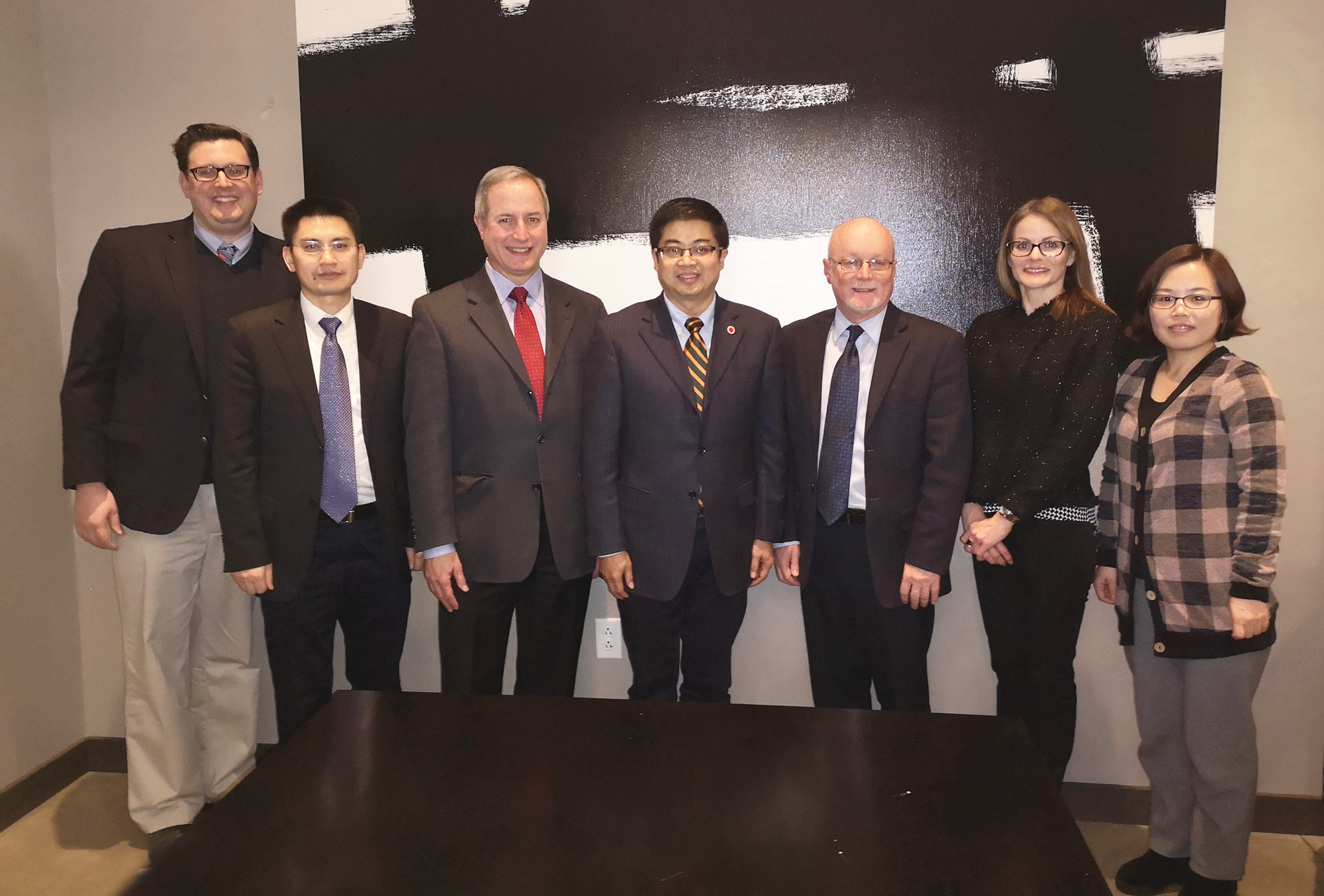 1月13日,代表团访问伊利诺伊州立大学,与该校国际处处长王一敏、艺术系主任Mike Willie举行会谈,就两校即将开展的“双语教师培训项目”“Beat365中国唯一官方网站学生赴美短期学习项目”进行深入探讨和细节落实,并确认Beat365中国唯一官方网站师范教育学生一学期定制实习项目的具体实施方案。此外,双方还就已有项目的拓展方向和目标进行沟通交流。Beat365中国唯一官方网站于2016年与ISU签订校际合作协议,此后随即开展了各类长短期学生交流、教师双语教学培训等项目,并曾于2018年寒假单次派出84名同学和9名带队老师赴该校短期交流学习,这是Beat365中国唯一官方网站办学历史上短期项目单次派出师生人数最多的项目。本次访问,奠定了未来双方在本科2+2项目、双硕士项目、师范生实习项目、教师培训项目及其他领域更广泛的合作基础。