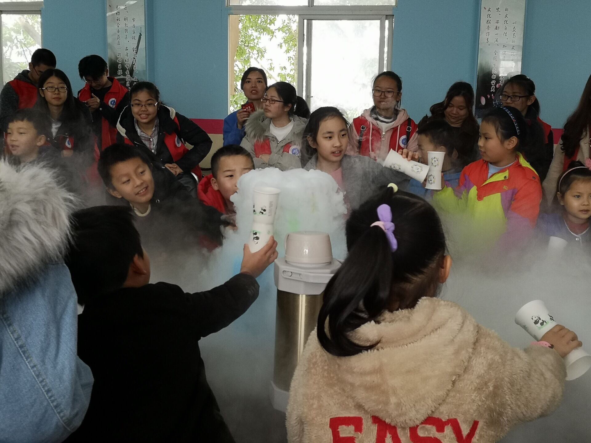 这次进社区,学院的专业社团还精心组织了“垃圾分类—请带‘我’回家”的公益科普体验活动,吸引了30多名社区儿童和青少年参与。妙趣横生的“水火箭”“纸杯飞行器”科技小制作引导小朋友们动手动脑,变废为宝;腾云驾雾的干冰挥发场面,让孩子们惊呼神奇;激烈的垃圾分类知识竞答,更是激发了大家学习科学知识的劲头……整个过程全免费,孩子们学知识还能动手,家长们也看得津津有味。