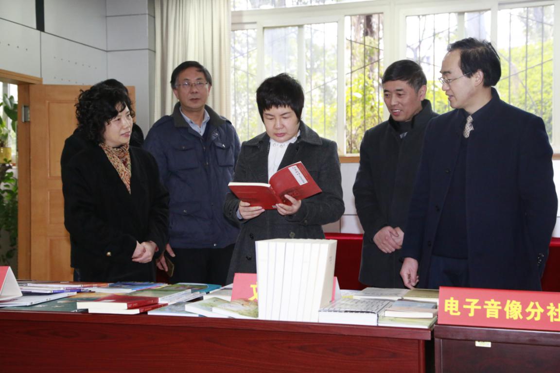 吴玉荣副部长首先参观了出版社2018年度十佳图书评选展览,她一边翻阅图书,一边详细地询问出版社的基本情况。