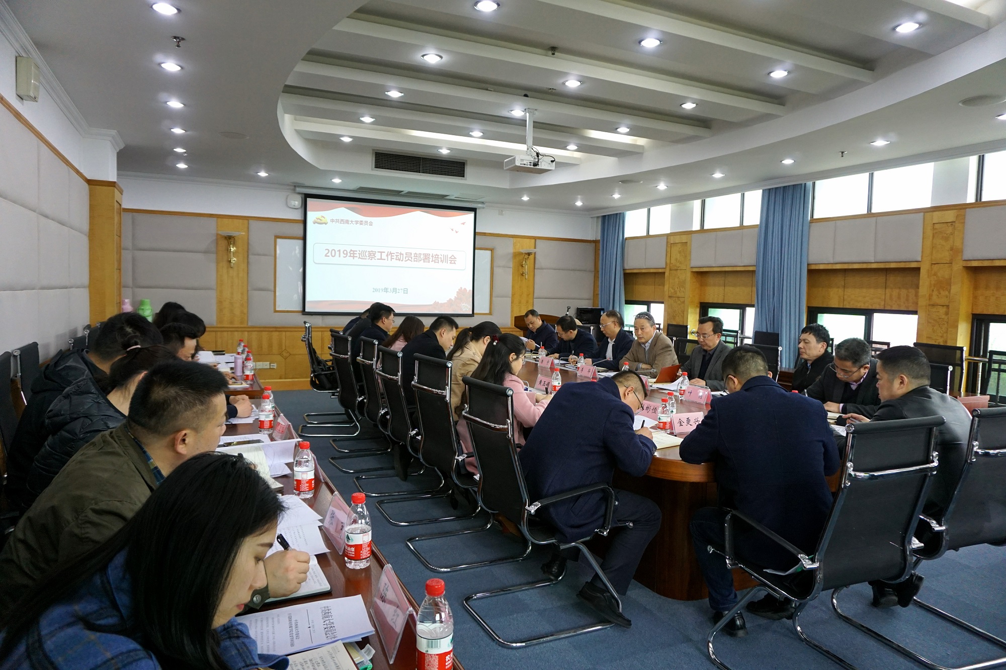 3月27日下午,学校召开2019年春季学期巡察工作动员部署暨业务培训会,贯彻落实新时代巡视巡察工作精神和教育部党组关于直属高校巡察工作部署要求,对2019年春季学期巡察工作进行动员部署,对巡察组成员作专题培训。党委副书记、纪委书记、巡察工作领导小组副组长李华出席会议。校纪委副书记、纪委办公室主任、监察处处长李荣华主持会议。巡察组全体成员、巡察办公室干部参加会议。