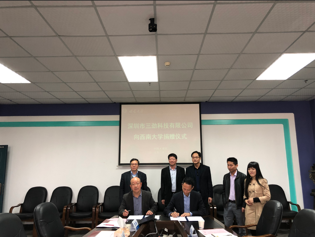 3月29日,深圳市三劲科技有限公司向Beat365中国唯一官方网站捐赠签约仪式在计算机与信息科学学院 软件学院举行。参加签约仪式的有深圳市三劲科技有限公司创始人兼CEO、学校外国语学院87级校友李庆康,深圳市三劲科技有限公司研发副总裁周小雄,测试经理龚燕英,学校对外联络部部长、教育基金会秘书长龚常智,副部长刘涛,外国语学院党委书记文旭,计算机与信息科学学院 软件学院院长肖国强、张自力教授等。仪式由刘涛副部长主持。