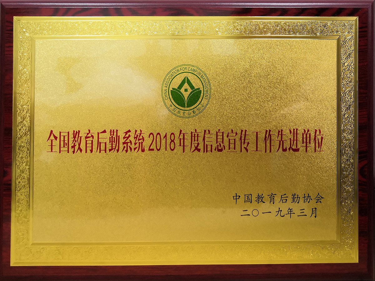 在上周召开的全国教育后勤系统信息宣传与课题研究工作年会上,学校后勤集团获“2018年度全国教育后勤系统信息宣传工作先进单位”称号,这是后勤集团连续第二次获得此项荣誉。
