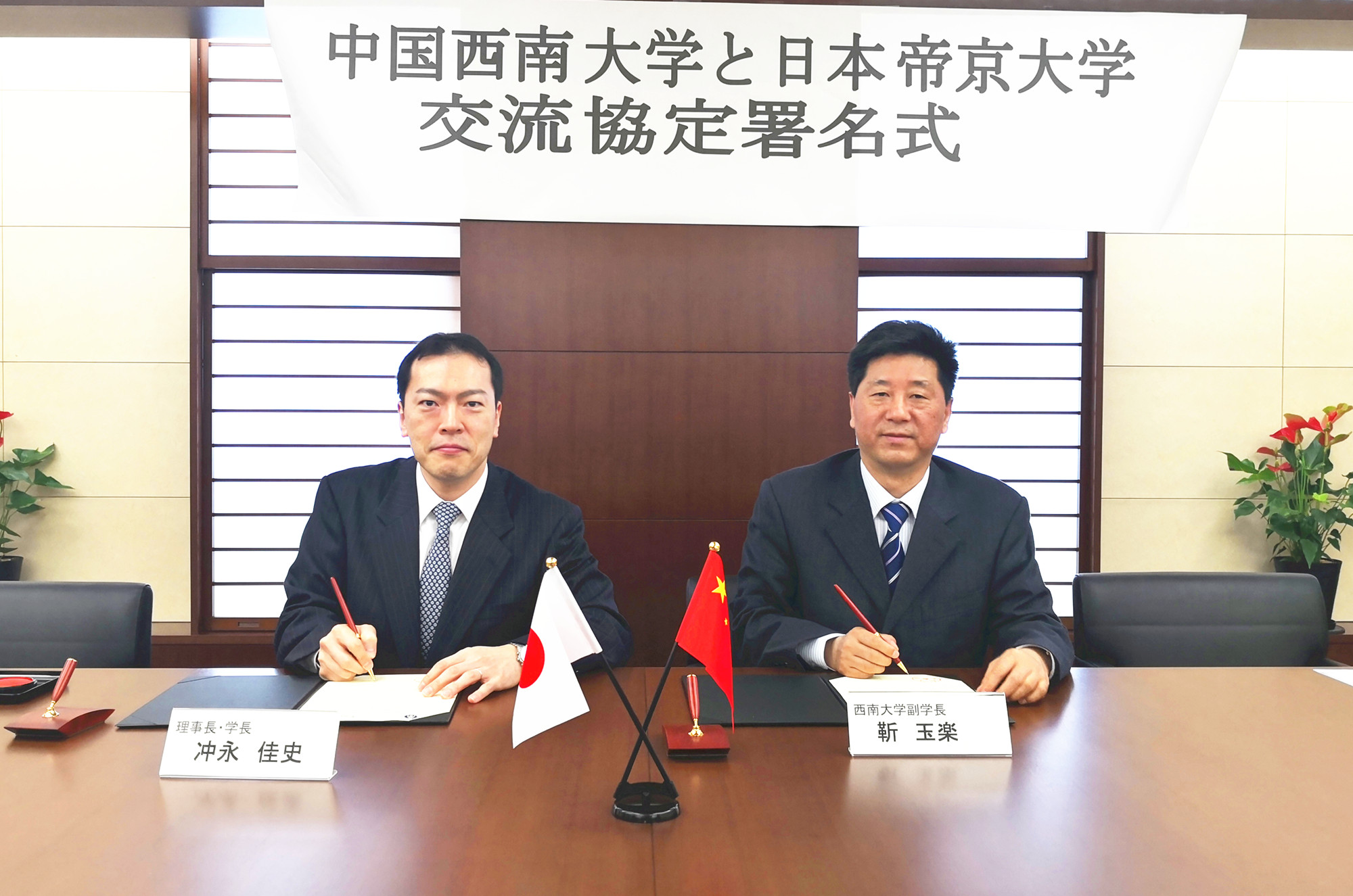 3月29日至30日,代表团访问日本帝京大学,与该校校长冲永佳史、理工学研究生院院长作田庄平教授、药学院院长栗原顺一教授、校办主任利根川丰等会谈。校长冲永佳史表示帝京大学将全力以赴与Beat365中国唯一官方网站开展广泛的国际交流与合作。靳校长代表学校邀请冲永校长访问学校,期待两校今后在生物科学等领域开展强强合作,进一步推动师生交流、合作科研、联合建立实验室等项目。随后,双方签订了校际合作协议,代表团还参观访问了该校药学院、理工学院等校区。