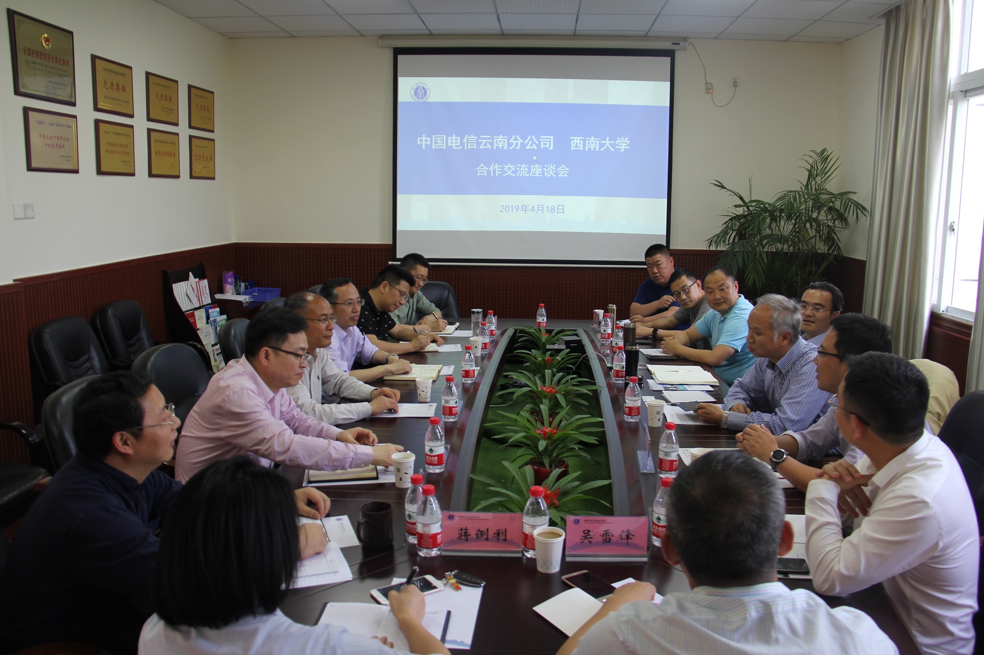4月18日,中国电信云南分公司副总经理曹春江率队来校考察交流,洽谈校企合作相关事宜。学校校长助理褚远辉,校地合作处处长程龙、副处长杨明厚,计算机与信息科学学院/软件学院党委书记靳拥军,基础教育投资集团副总经理游伟及柑桔研究所相关专家参加座谈交流。