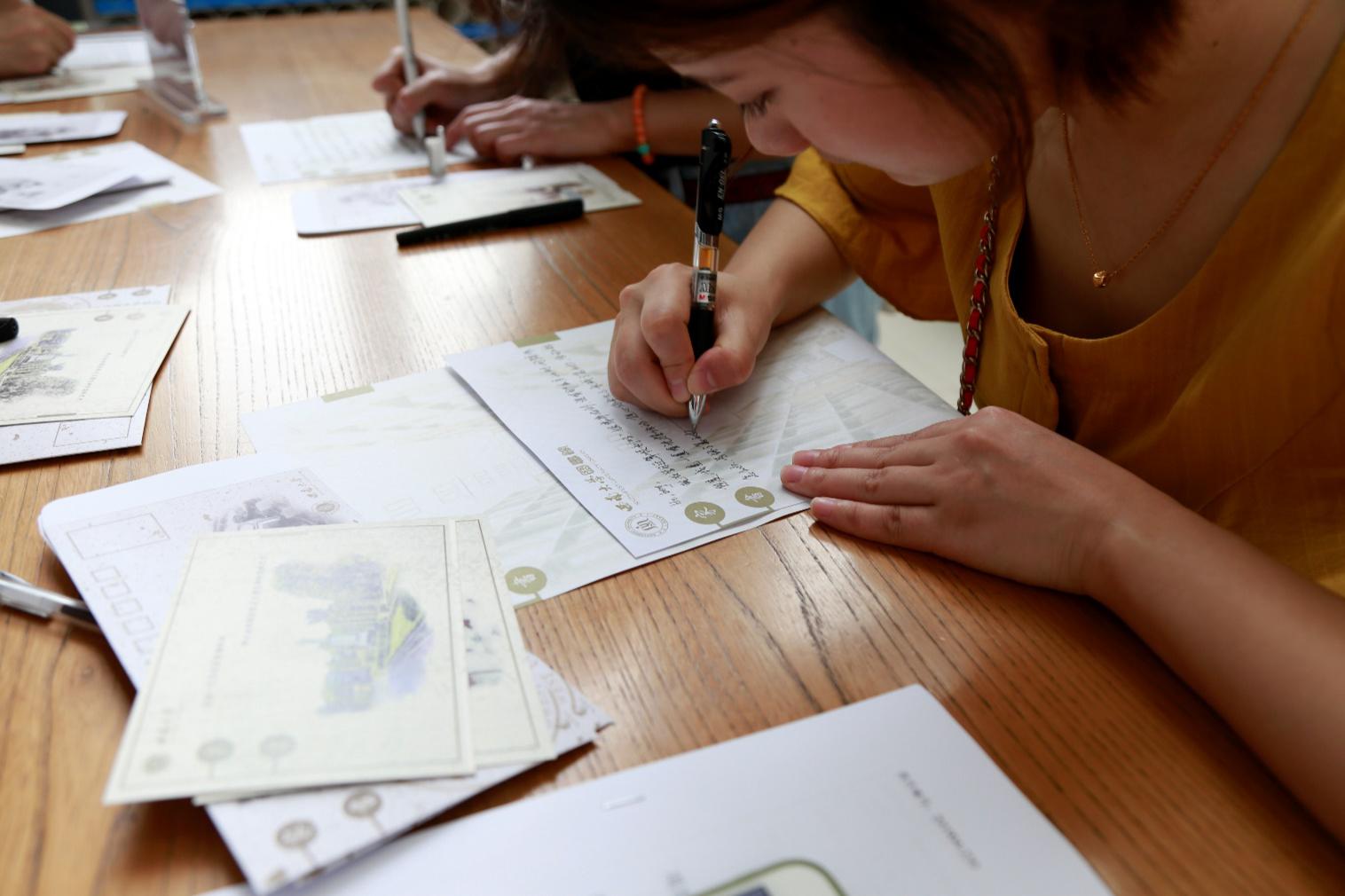 同时举办的“一封家书”书写活动更受到大家的青睐。现场发放出纪念封800余个,纪念版明信片1000余个,大学生、集邮协会的会员、校友及市民共463人参加了“一封家书”书写活动。让很少写书信的九零后的学子们感受了墨迹里的真诚与温馨,使更多的学子们重温了传统书信文化。