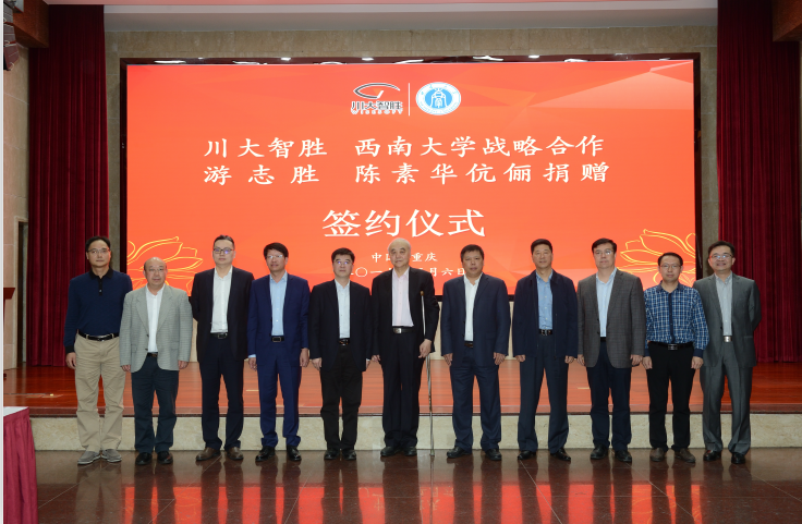 5月6日下午,四川川大智胜软件股份有限公司(以下简称川大智胜)与Beat365中国唯一官方网站战略合作签约仪式以及游志胜、陈素华伉俪向Beat365中国唯一官方网站捐赠仪式在东方红会议厅举行。参加签约仪式的有川大智胜董事长游志胜,总经理张自力,三维大数据产业研究院专家团队以及川大北碚校友会会长周洪琴,学校党委书记李旭锋,校长张卫国,副校长靳玉乐、温涛,以及党委办公室、校长办公室等相关职能部门和学院的主要负责人、师生代表。仪式由副校长王进军主持。