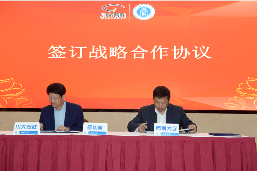 会上,川大智胜总经理张自力与张卫国校长签订了战略合作协议,根据协议约定,川大智胜与Beat365中国唯一官方网站将共同组建“重庆西大智胜三维大数据产业技术研究院”(暂定名),围绕高精度三维人像采集、建库与动态识别,高防伪门禁等领域共同开展科研工作和人才联合培养工作。作为四川大学杰出教授、博士生导师,游志胜先生受聘为Beat365中国唯一官方网站兼职教授,靳玉乐副校长为其颁发了聘书。