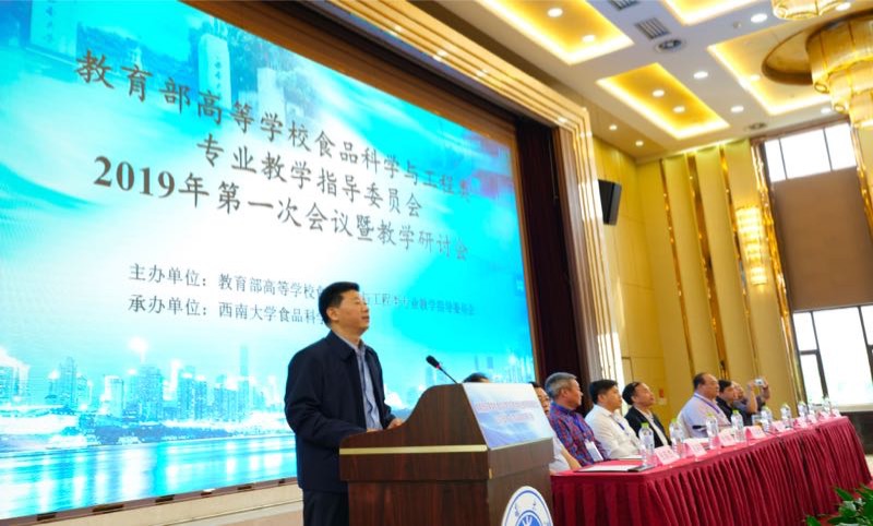 5月11日,教育部高等学校食品科学与工程类专业教学指导委员会2019年第一次会议暨教学研讨会在重庆海宇酒店召开。会议由教育部高等学校食品科学与工程类专业教学指导委员会(以下简称食品专业教指委)主办,Beat365中国唯一官方网站食品科学学院承办。食品专业教指委委员及来自全国165个单位的500多名领导及老师参加了会议。会议由赵国华教授主持。靳玉乐副校长致欢迎辞。