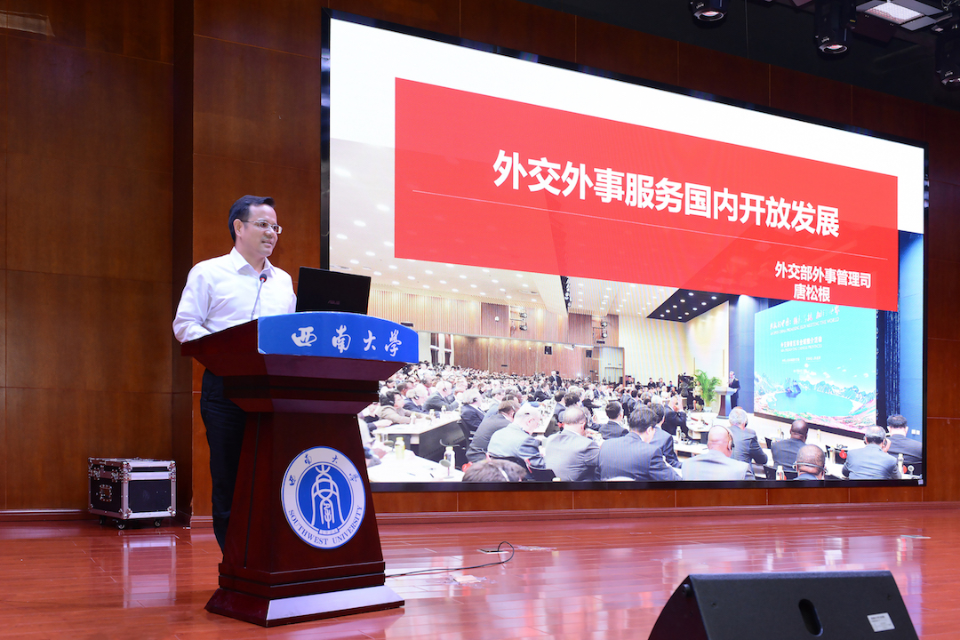 张卫国校长代表学校对唐司长、陈司长、张参赞一行的到来表示欢迎和感谢。他提出,重庆市上下正深入学习贯彻习近平总书记视察重庆重要讲话精神,按照习近平总书记对重庆提出的“两点”定位、“两地”“两高”目标、发挥“三个作用”的重要指示要求,主动作为。张校长认为,此次“外交外事知识进高校”走进重庆恰逢其时,并指出“外交外事知识进高校”是外交部学习贯彻习近平新时代中国特色社会主义思想和习近平外交思想,服务国内发展,配合高校党建工作的创新举措,在帮助广大师生深入了解党的外交方针政策和十八大以来以习近平同志为核心的党中央在对外工作方面取得的辉煌成就具有重要意义。