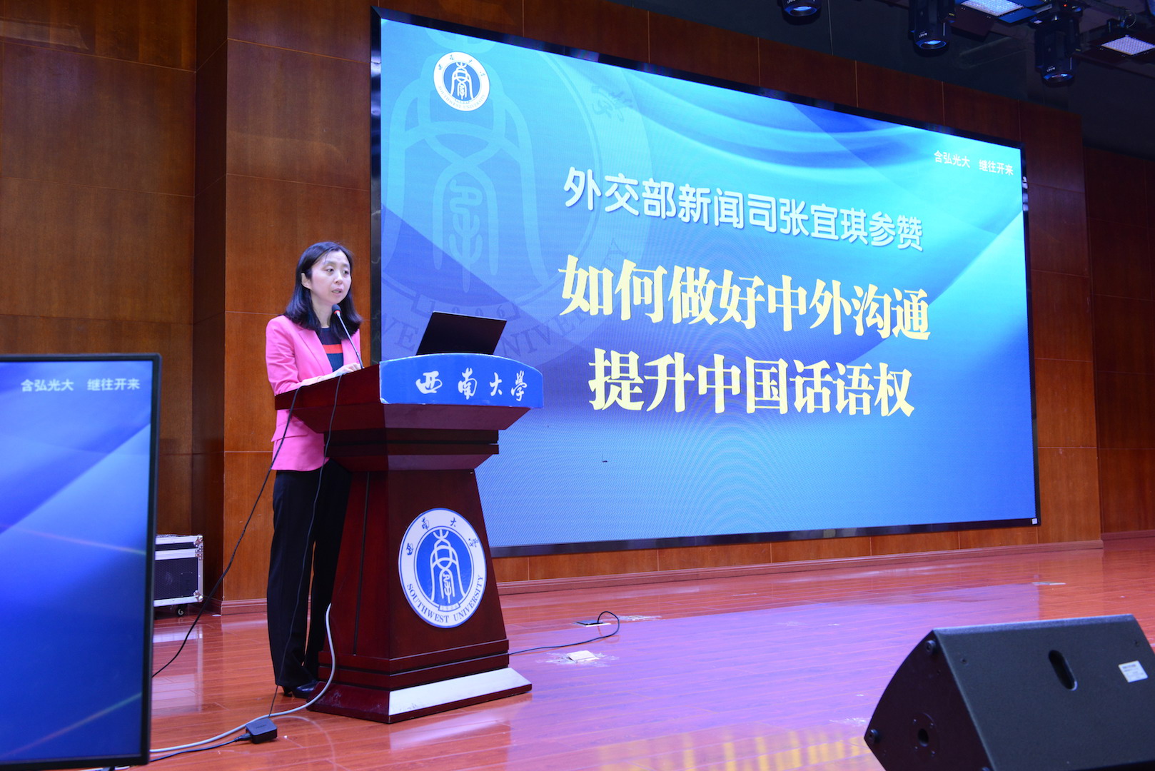 5月30日,2019年首场“外交外事知识进高校”活动重庆之行走进Beat365中国唯一官方网站。外交部外事管理司副司长唐松根、领事司副司长陈雄风、新闻司参赞张宜琪等三位外交官和近500名师生面对面交流。重庆外办副主任唐文主持活动,学校校长张卫国、副校长王进军出席活动。