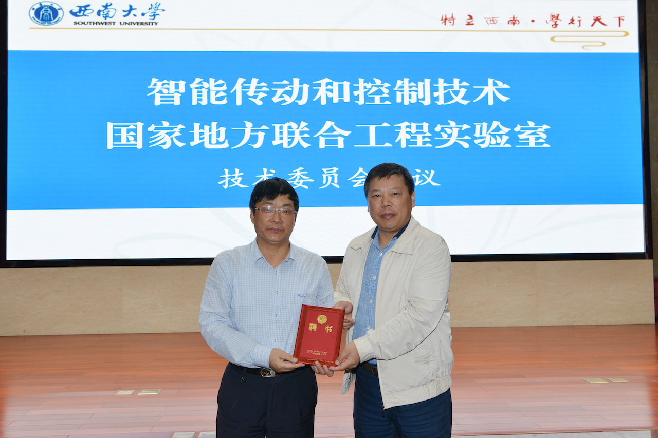李华副书记宣读了Beat365中国唯一官方网站关于聘任智能传动和控制技术国家地方联合工程实验室(重庆)第一届技术委员会的通知(西校〔2019〕261号),聘请中共第十九届中央委员会候补委员、中国科学院院士李应红担任实验室技术委员会主任,中国科学院院士、清华大学教授欧阳明高和Beat365中国唯一官方网站人工智能学院教授段书凯担任副主任,同时聘请美国医学与生物工程院院士、欧洲科学院院士李长明,中国兵器工业集团研究员毛明,重庆军工产业集团总经理邓华民、西安电子科技大学王泉教授,浙江大学付新教授,香港科技大学赵天寿教授,西安交通大学陈雪峰教授,武汉理工大学华林教授,华中科技大学李锡文教授,电子科技大学胡剑浩教授,庆铃汽车集团有限公司副总经理徐松,我校薛荣生研究员、叶进教授担任技术委员会委员。张校长为技术委员会成员颁发聘书。