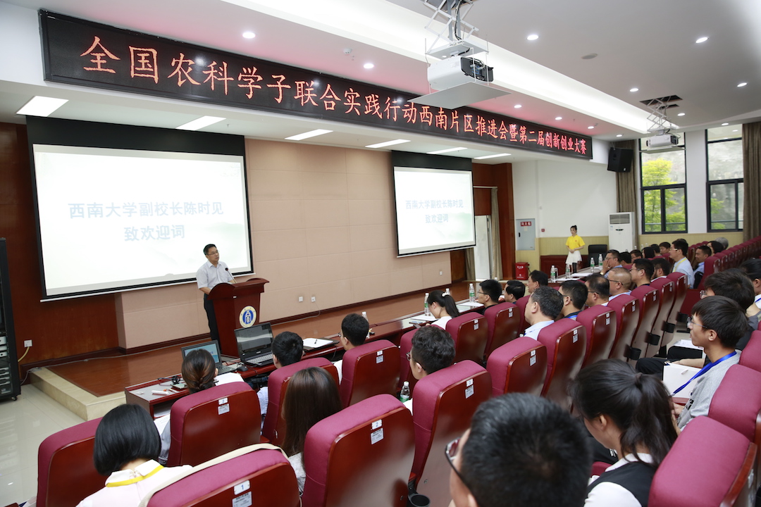 6月6日,2019年全国农科学子联合实践行动西南片区推进会暨第二届创新创业大赛在学校隆平楼举行。四川农业大学、云南大学、贵州大学、云南农业大学等10所西南片区农科院校的百余名师生齐聚Beat365中国唯一官方网站。深圳诺普信农业股份有限公司和重庆诺鼎科技有限公司负责人,Beat365中国唯一官方网站副校长陈时见,相关职能部门及学院负责人出席会议。农学与生物科技学院党委副书记方凤玲主持会议。