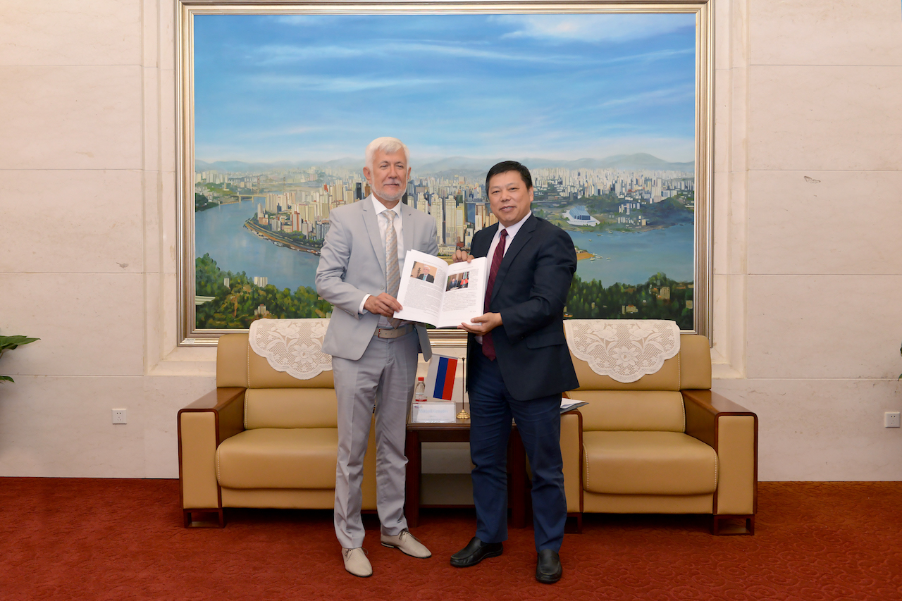 双方就两校继续加强俄语专业师生交流、合作科研、联合培训项目、数字化汉语教学建设等方面进行了深入探讨。同时,米哈伊尔校长给张校长带来了第一期《俄语国家评论》期刊杂志,该杂志系两校依托“俄语区域国际研究中心”创办的联合科学研究期刊,旨在为两国政府提供智库支持,是两校合作史上的重大成果。