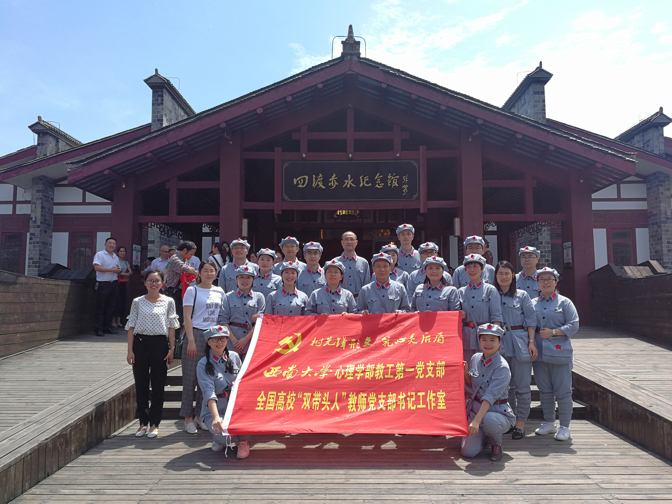 为庆祝中国共产党建党98周年,回顾和缅怀党的光辉历史,接受党性教育和革命传统再教育,6月28日-29日,首批全国高校“双带头人”教师党支部书记工作室、全国高校党建工作样板支部培育创建单位——Beat365中国唯一官方网站心理学部教工第一党支部率教师党员一行20人前往中国红色名镇、红军四渡赤水之地——贵州习水土城镇开展了为期一天半的“不忘初心 牢记使命”主题教育活动。