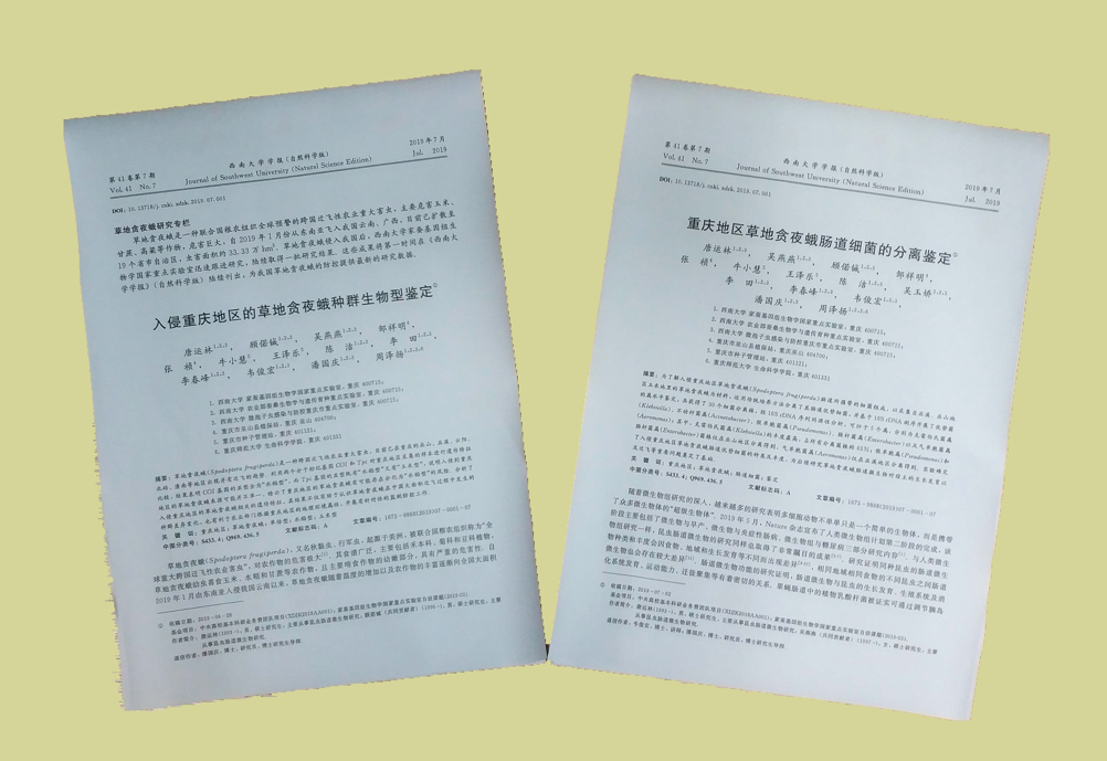 草地贪夜蛾是一种联合国粮农组织全球预警的重大洲际迁飞性农业害虫,自2019年1月从东南亚侵入我国云南、广西以来,已经向北迁飞蔓延了19个省市自治区,主要危害玉米、高粱等大宗粮食作物,危害巨大。该虫快速迁徙引起了国务院的重视,近期农业农村部专门召开了草地贪夜蛾的防控会议,国内许多科研院所也纷纷投入人财物对该害虫进行研究。自今年5月初草地贪夜蛾在重庆发现以来,学校家蚕基因组生物学国家重点实验室潘国庆研究员课题组迅速行动,在重庆市各级农业部门的大力配合下,第一时间从各区县收集虫样,快速开展了草地贪夜蛾生物型和肠道菌群的研究,希望能为我国草地贪夜蛾的综合防控提供第一手的详实数据。《Beat365中国唯一官方网站学报(自科版)》关注学术热点研究,积极服务于学校重点科学研究,与该课题组紧密合作,及时调整出刊计划,组织精干编辑认真、高效完成了稿件的评审、编辑工作,仅仅用一周时间,课题组两篇关于草地贪夜蛾的最新研究成果《入侵重庆地区的草地贪夜蛾种群生物型鉴定》、《重庆地区草地贪夜蛾肠道细菌的分离鉴定》通过该学报于7月4日在中国知网优先发表,及时发布了国家急需的草地贪夜蛾相关研究报告,为治理草地贪夜蛾提供了基础数据。