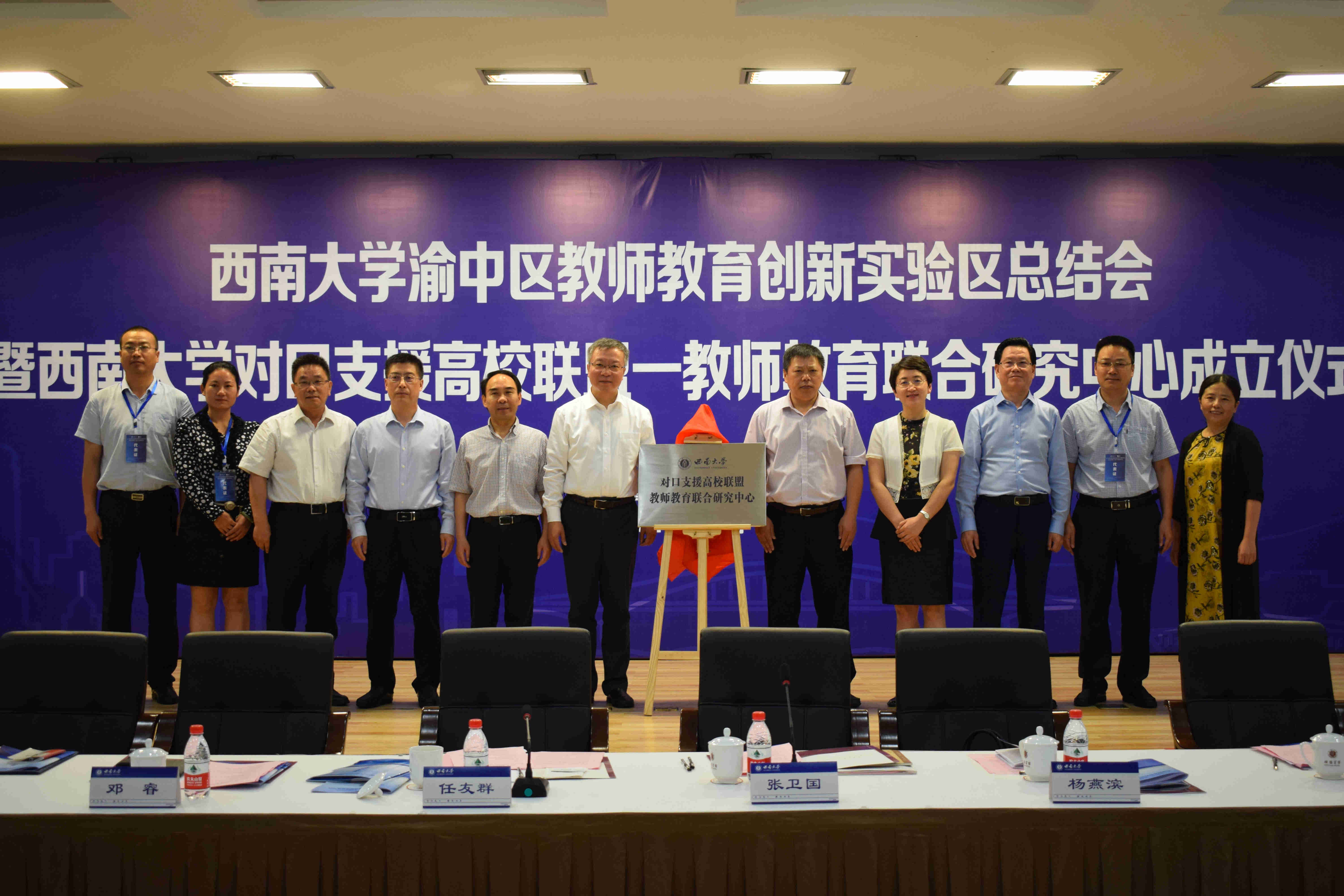 任友群司长一行同邓睿副主任、刘先海副巡视员、渝中区区委常委张远洪、渝中区教委主任唐点权等领导出席Beat365中国唯一官方网站——重庆市渝中区人民政府共建教师教育创新试验区总结会暨Beat365中国唯一官方网站对口支援高校联盟—教师教育联合研究中心成立仪式,观看了Beat365中国唯一官方网站教师教育创新实验区建设专题片,听取了教师教育学院副院长张学斌关于实验区的建设总结汇报,刘先海副巡视员宣读了实验区建设专家评审意见。张卫国校长向渝中区“Beat365中国唯一官方网站卓越教师工作站”授牌并向卓越教师培养导师颁发聘书,聘请渝中区10位优秀教师为学校卓越教师培养导师;张远洪常委向Beat365中国唯一官方网站教师颁发聘书,聘请学校10位教师担任渝中区名师名校长培养导师。任友群司长和张卫国校长共同为“Beat365中国唯一官方网站对口支援高校联盟—教师教育联合研究中心”揭牌。张远洪常委讲话指出,教师教育创新实验区建设为渝中教育提供了强有力的智力支持和人才保证,也为渝中教育实现高质量发展奠定了坚实的基础。希望Beat365中国唯一官方网站和渝中区能够继续携手,在教师教育等各领域开展更加深入、广泛的合作,积极探索新路径、实施新策略,形成多边互动、互惠互利、合作共赢的良好局面,为努力办好人民满意的教育而共同努力。