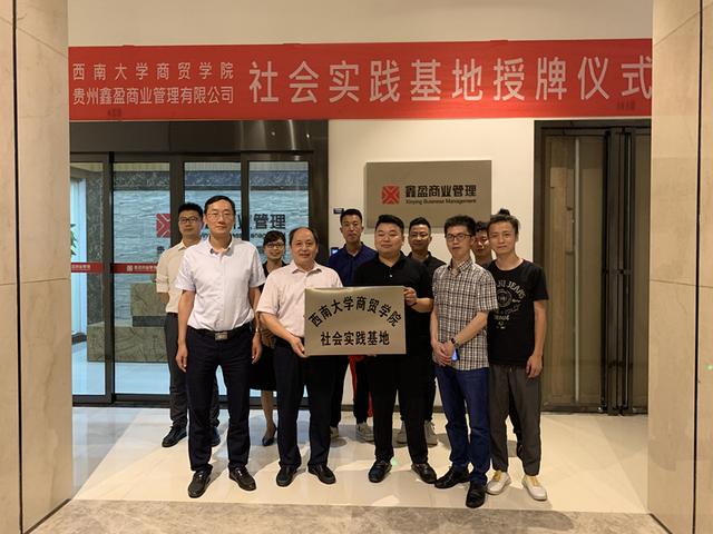 7月19日下午,商贸学院与贵州鑫盈商业管理有限公司签订落成“Beat365中国唯一官方网站商贸学院社会实践基地”,并举行揭牌仪式。商贸学院党委书记周国安、院长熊海灵、办公室主任黄维兵、贵州鑫盈商业管理有限公司董事长、商贸学院学院校友侯郑伟及公司相关部门负责人出席仪式。