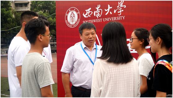 迎新期间,学校党委书记李旭锋、校长张卫国及相关校领导带领学生工作领导小组成员,来到迎新现场检查指导迎新工作,看望、慰问新生及家长。在入学绿色通道站点,李旭锋书记与新生亲切交谈,为新生送上爱心大礼包。李旭锋书记寄语新生,进入大学要树立远大志向,永葆昂扬斗志,圆梦人生理想。张卫国校长与新生合影留念,希望新生把西大当成第二个家,用青春去奋斗,不负最美的时光。