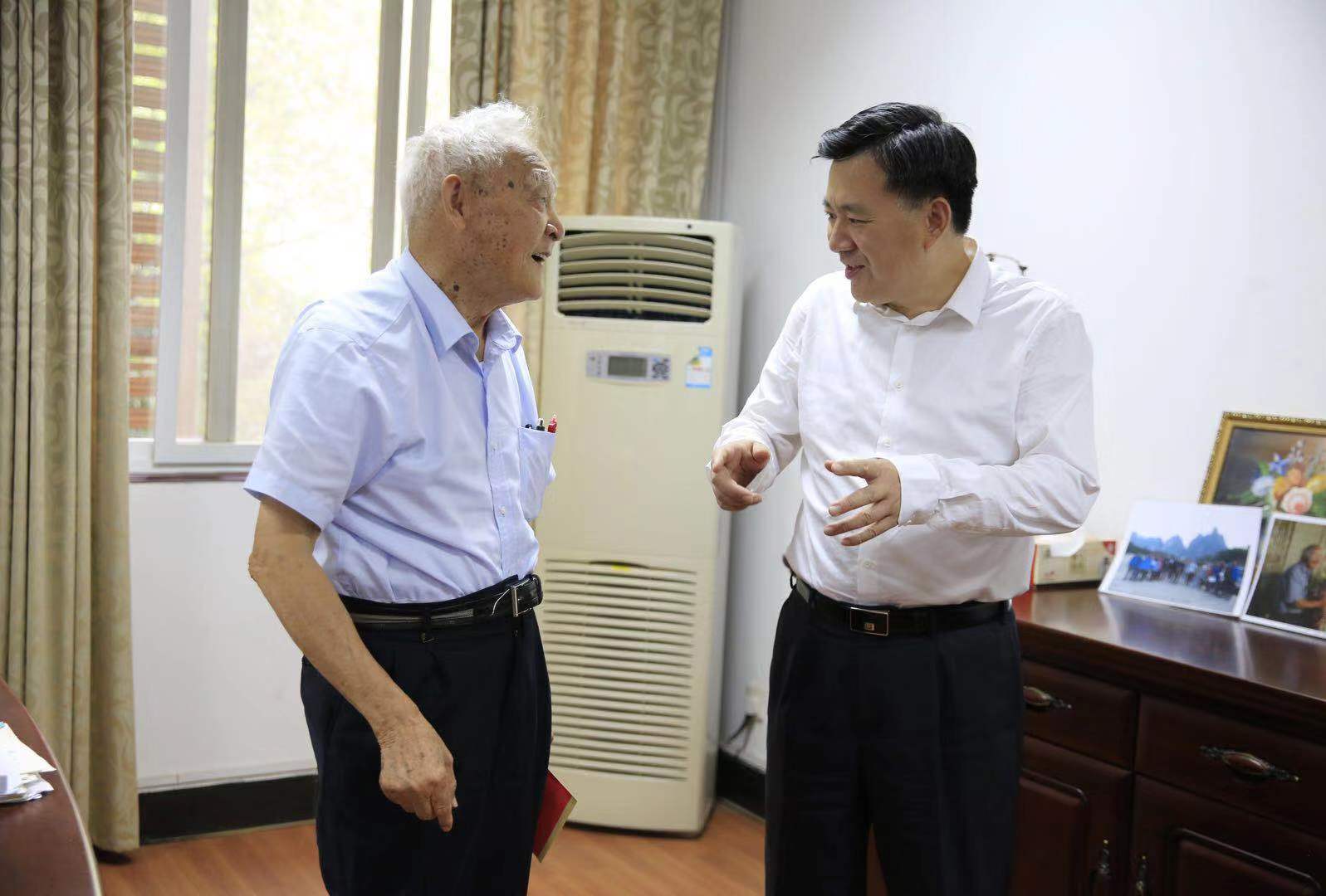 区委书记周旭、 区委副书记高洪波,区委常委、宣传部长江绪容一行亲切慰问了中国科学院院士袁道先、中国工程院院士向仲怀,学校党委副书记安春元,党委办公室、教师工作部相关负责人陪同慰问。