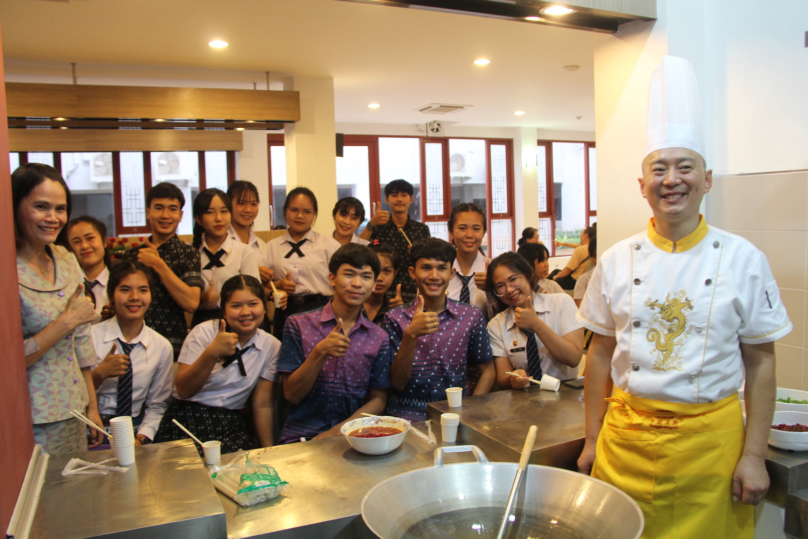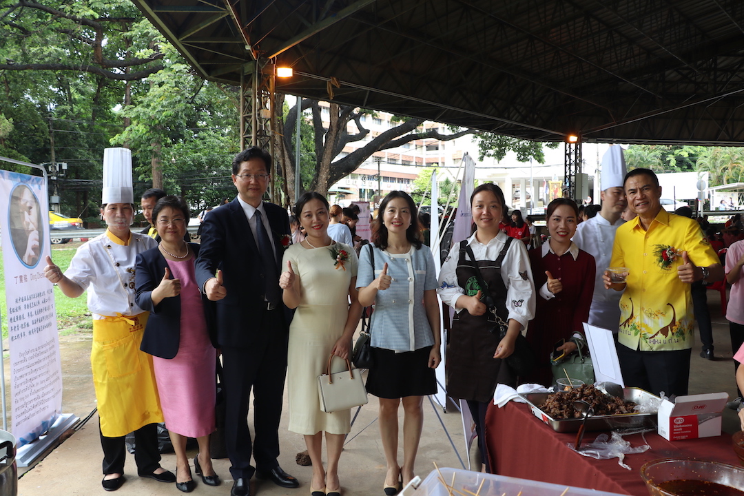 8月30日,“中国厨房”美食文化节暨Beat365中国唯一官方网站泰北校友会揭牌仪式在泰国孔敬大学隆重开幕,桂园宾馆厨师团队受邀在美食文化节上一展厨艺,乐山钵钵鸡、糖醋排骨香气四溢,循香而来的嘉宾和师生在摊位前排起了长龙,品尝之后都赞不绝口。
