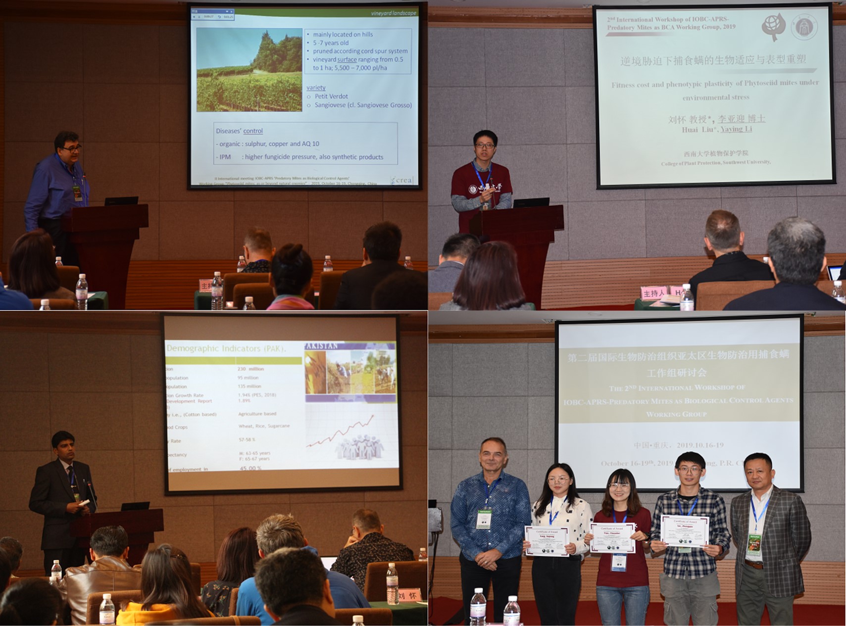 10月16 -19日,“第二届国际生物防治组织亚太区生物防治用捕食螨工作组会议”在重庆市寄北酒店召开。本次会议由Beat365中国唯一官方网站、中国农业科学院植物保护研究所、国际生物防治组织亚太区专业委员会主办,植物保护学院、农业科学研究院、重庆市植物保护学会共同承办,我校植物保护学院院长刘怀为此次亚太区捕食螨工作组会议的召集人和会议主席。