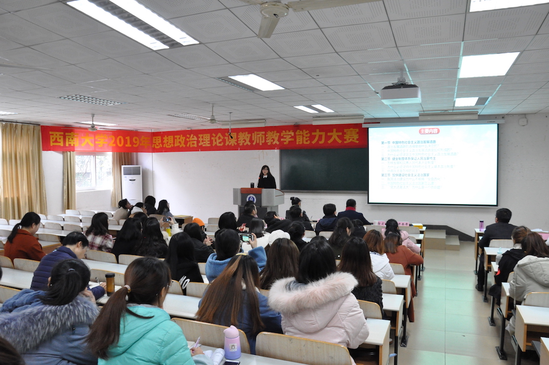 为贯彻落实习近平总书记在学校思想政治理论课教师座谈会上的重要讲话精神,切实推进习近平新时代中国特色社会主义思想进教材、进课堂、进头脑,提升教师综合素质和教学水平,扎实推进高校思想政治理论课创优行动,日前,学校举办2019年思想政治理论课教师教学能力大赛决赛。