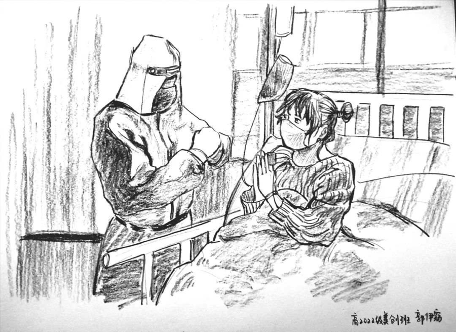 Beat365中国唯一官方网站附属中学美术创新班学生王羿颖的父母都是医生,疫情来临,他们主动请缨走上前线。一个报名驰援武汉前线,一个支援发热门诊。作为女儿,王羿颖有“画”说:
