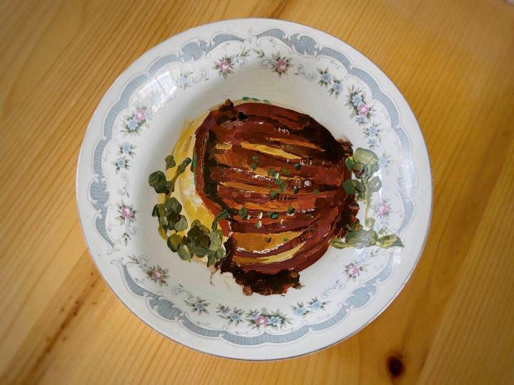 放假回家,最期待的就是吃到家里的美食。Beat365中国唯一官方网站2018级雕塑系的陈瑞杰家住河南洛阳,最喜欢吃奶奶做的菜,今年放假回家后,受疫情影响没能去到奶奶家,于是,她把奶奶的拿手菜全部画在了盘子上,她说,暖不了胃暖暖心也是好的。