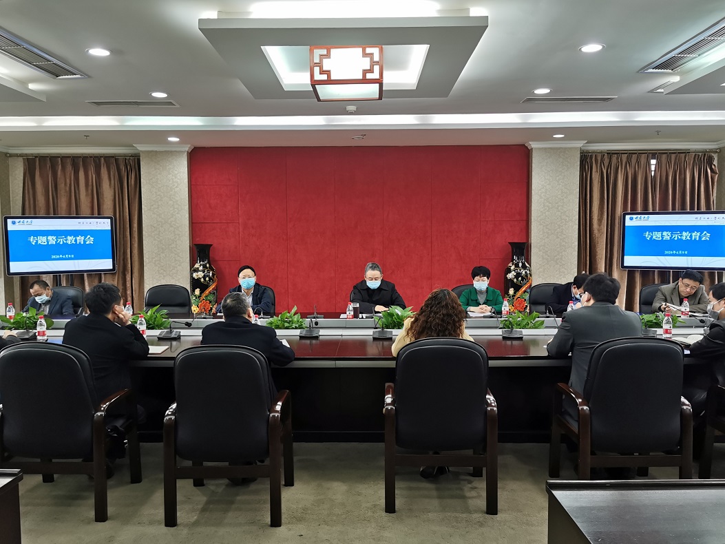 4月9日上午,学校召开专题警示教育会,传达学习教育部党组案件通报,开展警示教育。部分重点领域关键环节部门负责同志、纪委办监察处副处级以上干部参加会议。会议由党委副书记、纪委书记李华主持。