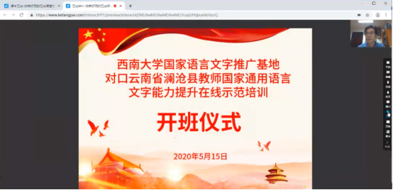 5月16日,学校国家语言文字推广基地对口云南省普洱市澜沧县教师国家通用语言文字能力提升在线示范培训正式开班,学校全体志愿者教师和澜沧县全体参训学员共同参加了线上开班仪式。