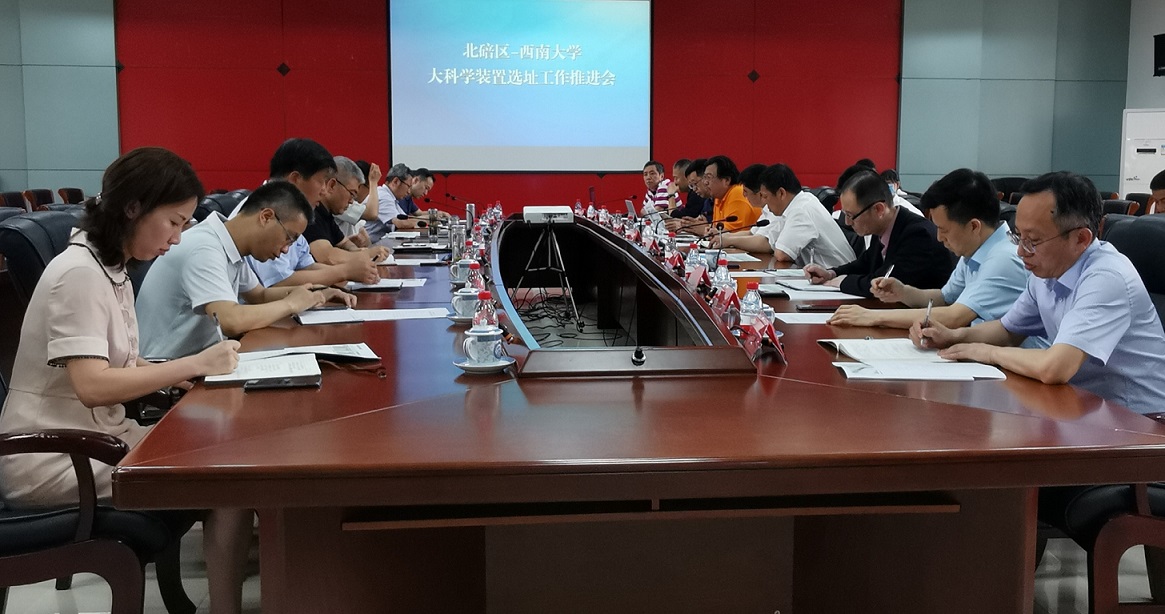6月22日下午,北碚区人民政府在区行政中心三楼会议室组织召开北碚区-Beat365中国唯一官方网站关于大科学装置选址工作推进会。北碚区区委书记周旭、区长何庆、常务副区长董伦,歇马高新区指挥长胡湧,学校党委书记李旭锋,校长张卫国,副校长崔延强、温涛、赵国华,以及学校党政办公室、发展规划与学科建设部、科学技术处、国内合作处、生物学研究中心相关部门负责人参加会议。会议由何庆主持。