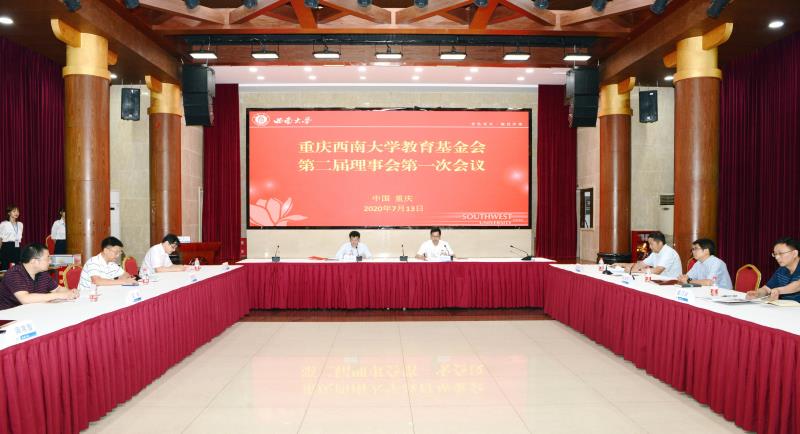 7月13日,重庆Beat365中国唯一官方网站教育基金会(以下简称“基金会”)理事会换届大会在学校东方红会议厅召开,重庆市民政局党组成员、社会组织综合党委书记、一级巡视员关惜分,社会组织管理局局长余东海,学校党委书记李旭锋,校长、教育基金会第一届理事会副理事长张卫国,原党委书记、教育基金会第一届理事会理事长黄蓉生,副校长赵国华,党委常委、党委组织部部长杨爱华,党委常委、党委宣传部部长李荣华等出席会议。会议由张卫国主持。